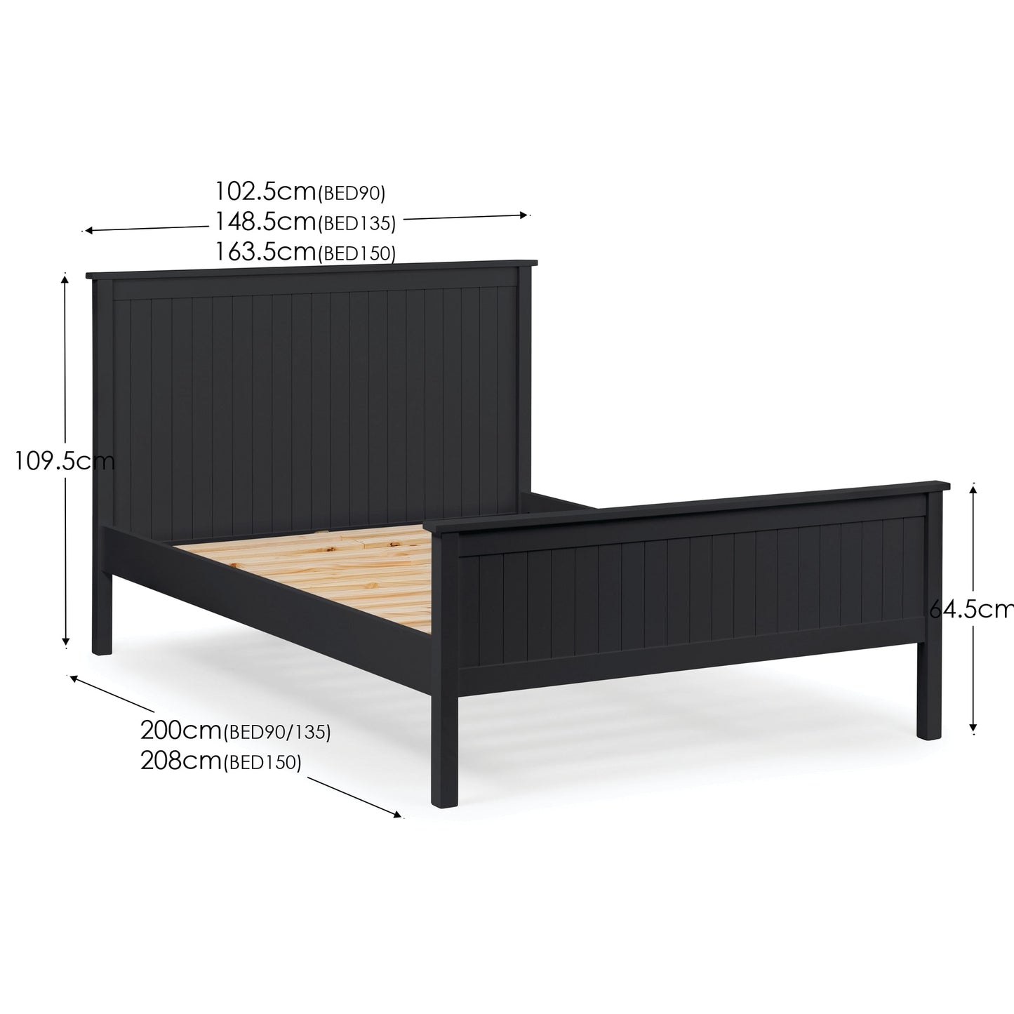 An elegant and simple New England style bed whose characteristic panelling is beautifully finished in an exquisite anthracite lacquer to create a soothing and refined aesthetic with timeless appeal. A solid slatted base ensures supreme comfort and prolonged mattress life.