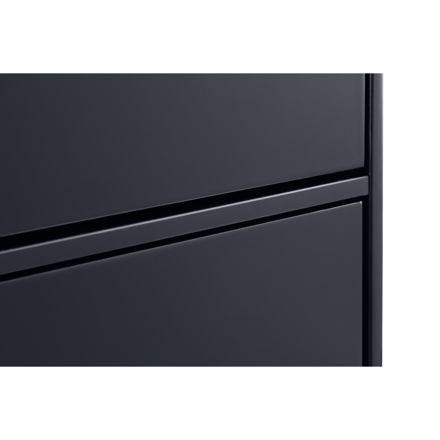 - Elegant Design: Crafted in a sleek Anthracite finish, this Julian Bowen Alicia Combination Wardrobe adds a touch of sophistication to any bedroom decor. The immaculate matt lacquered finish and tapered black legs enhance its modern appeal.