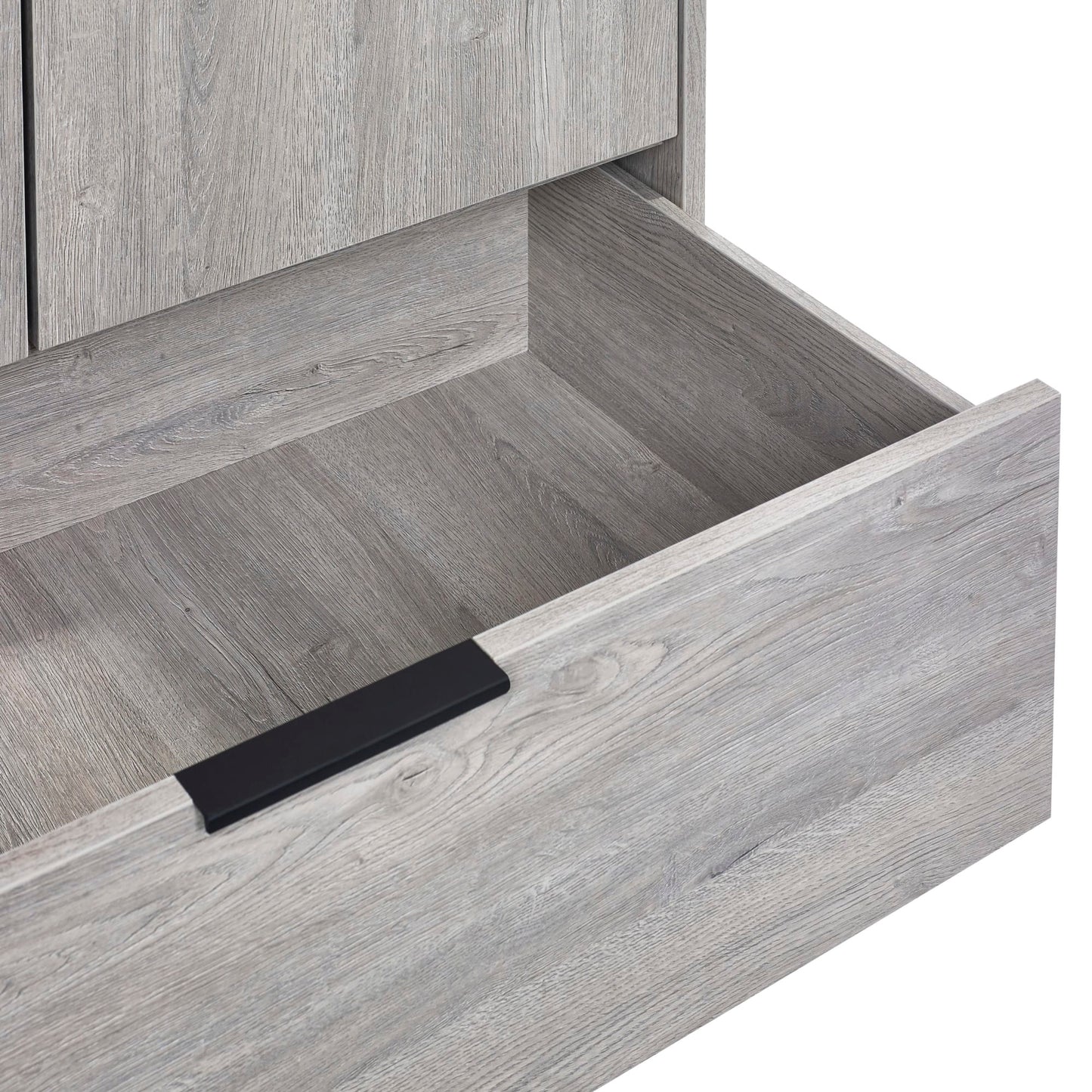 - Radiates rustic allure with its stunning grey oak finish, seamlessly complementing a range of interior styles
