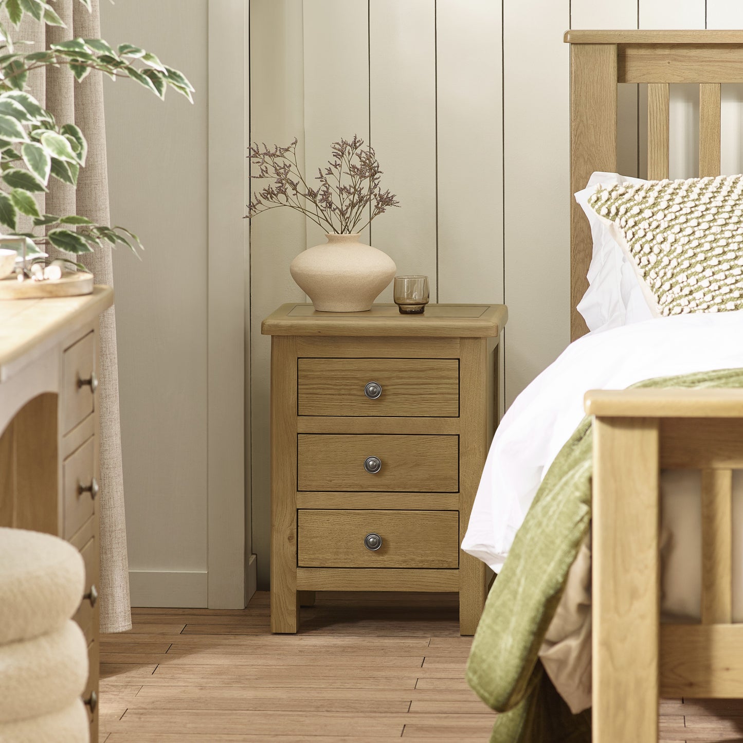 NameWindsor Smokey Oak 3 Drawer Bedside