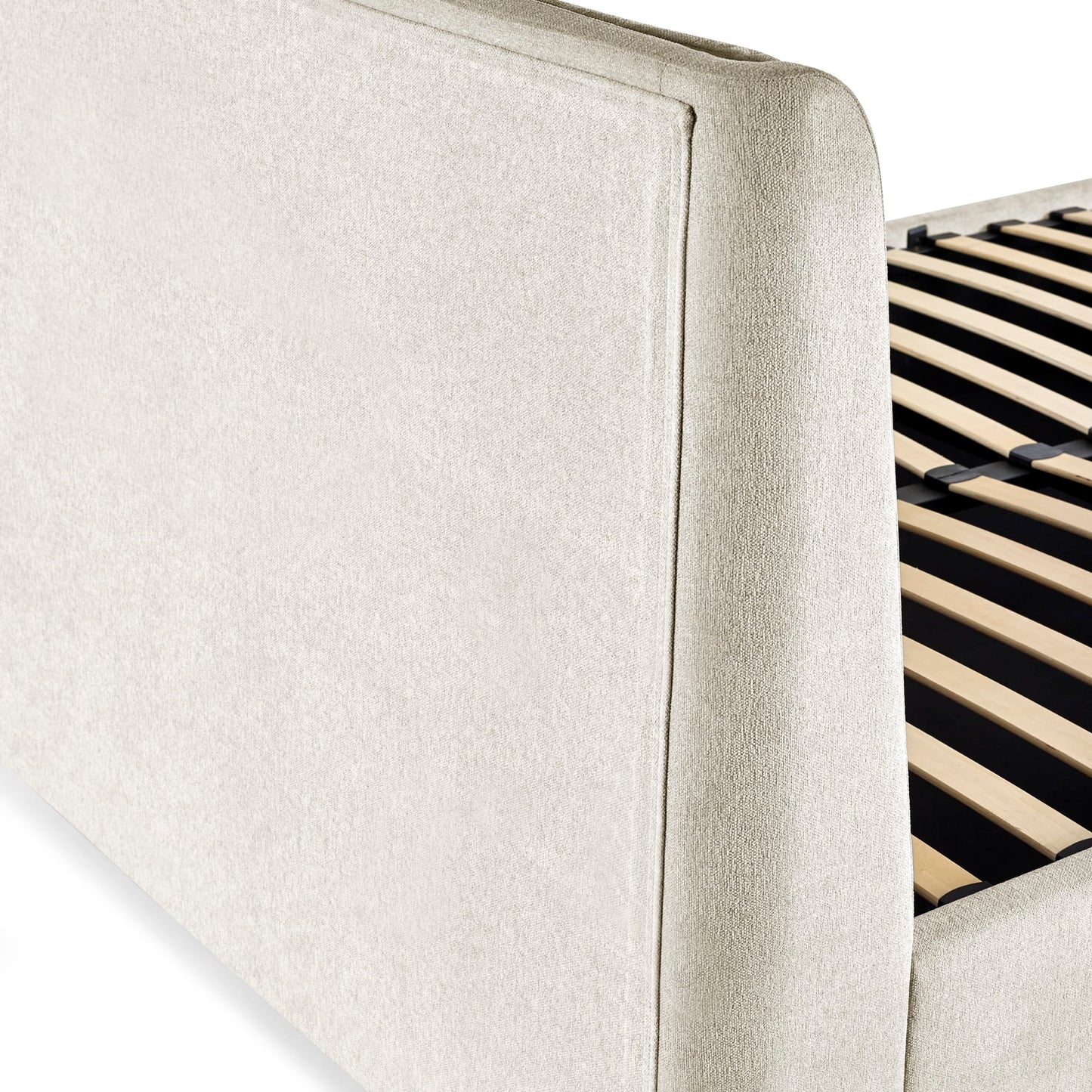 - SOFT FABRIC FINISH: The beige woven fabric upholstery brings softness and texture to this elegant fabric bed.