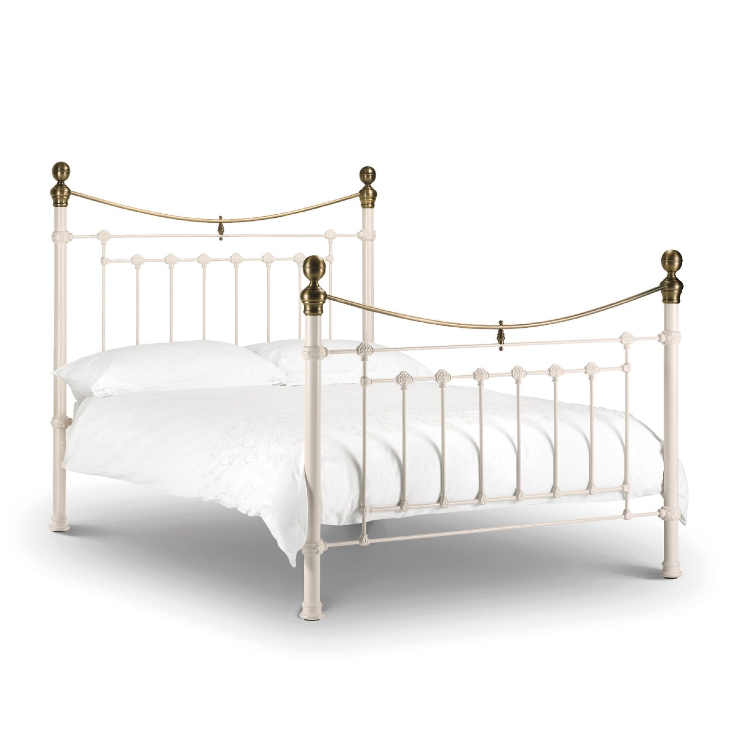 - This is a traditional, Victorian inspired bedstead with attractive brass embellishments in a powder coated steel stone white finish..