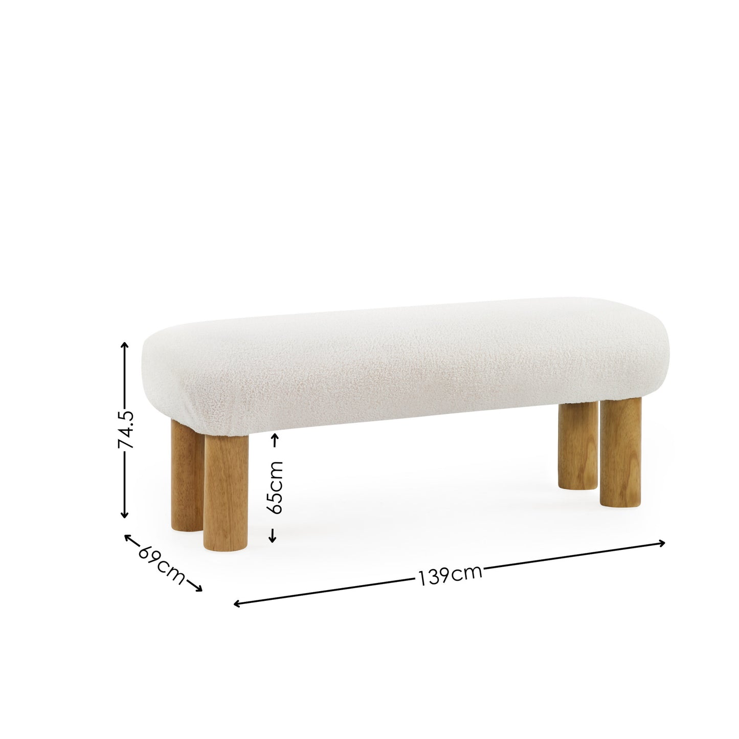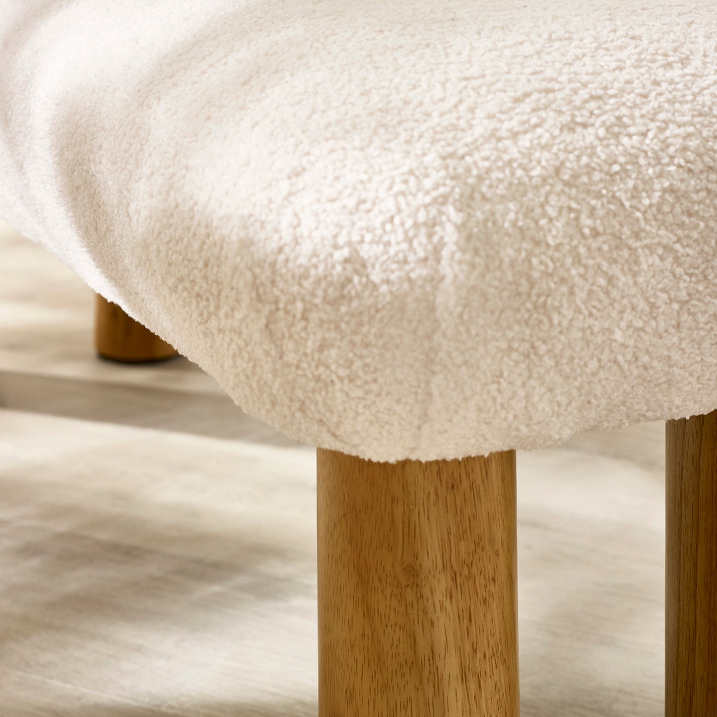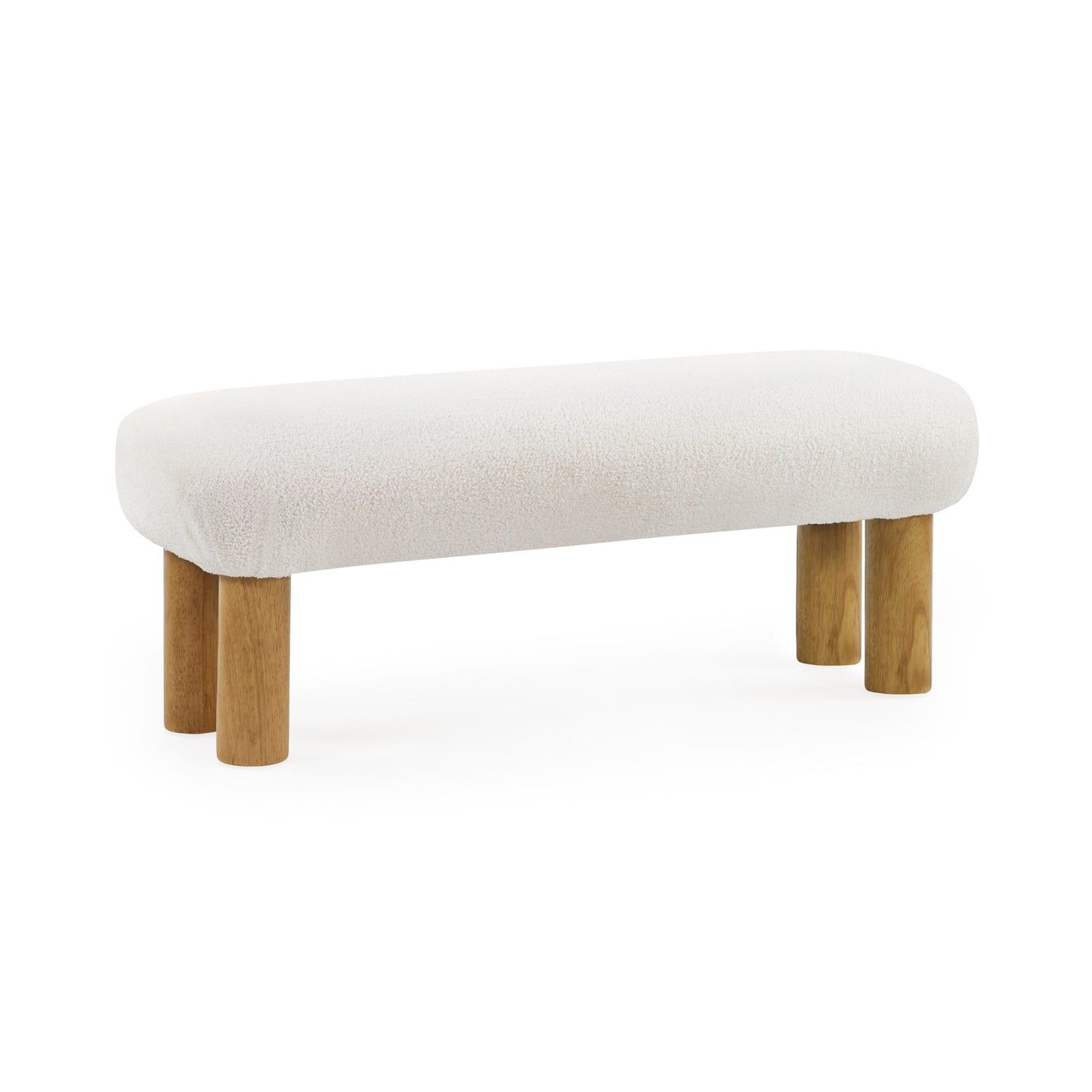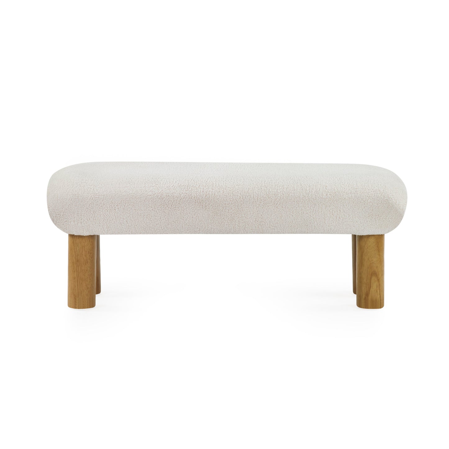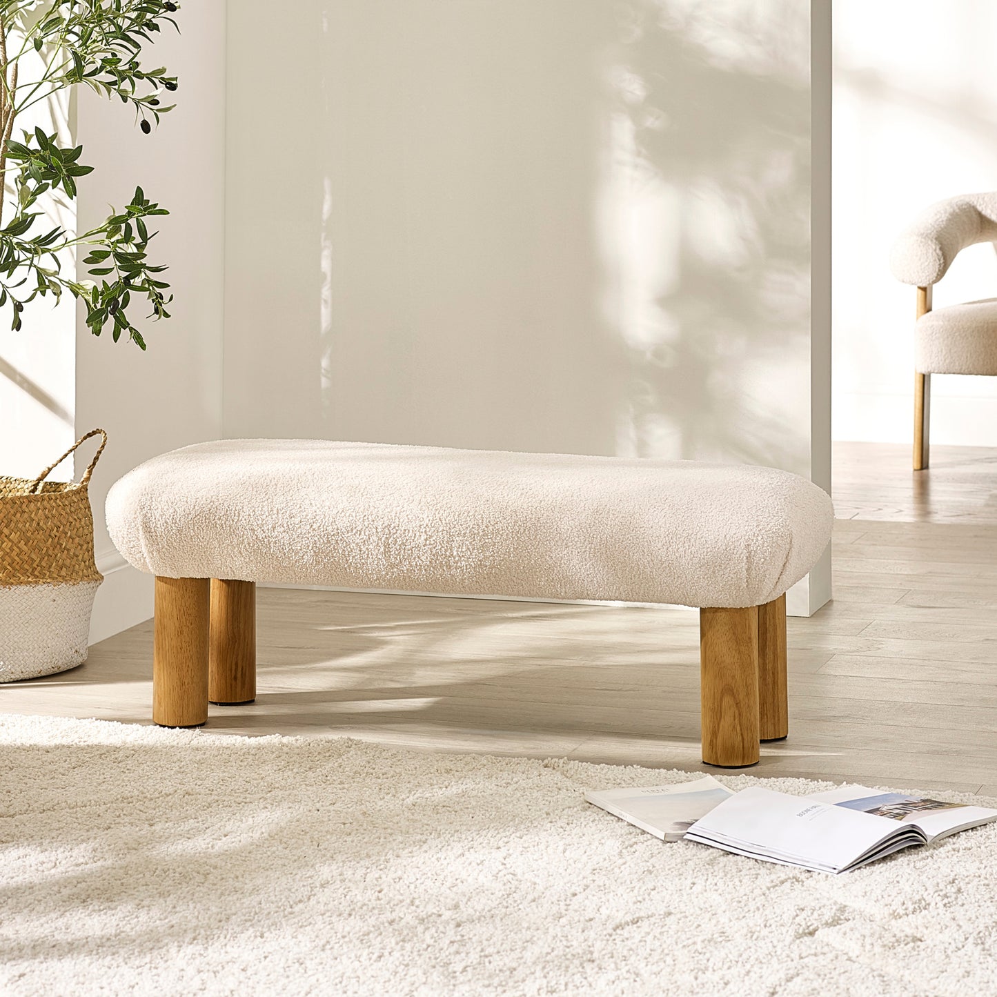 NameFreya White Boucle Upholstered Low Bench with Solid Wood Legs