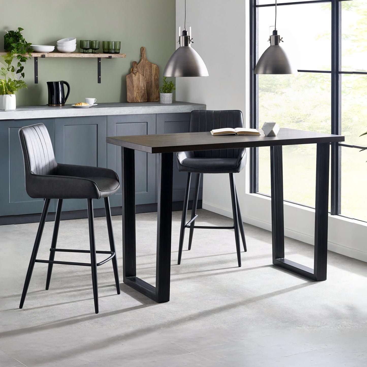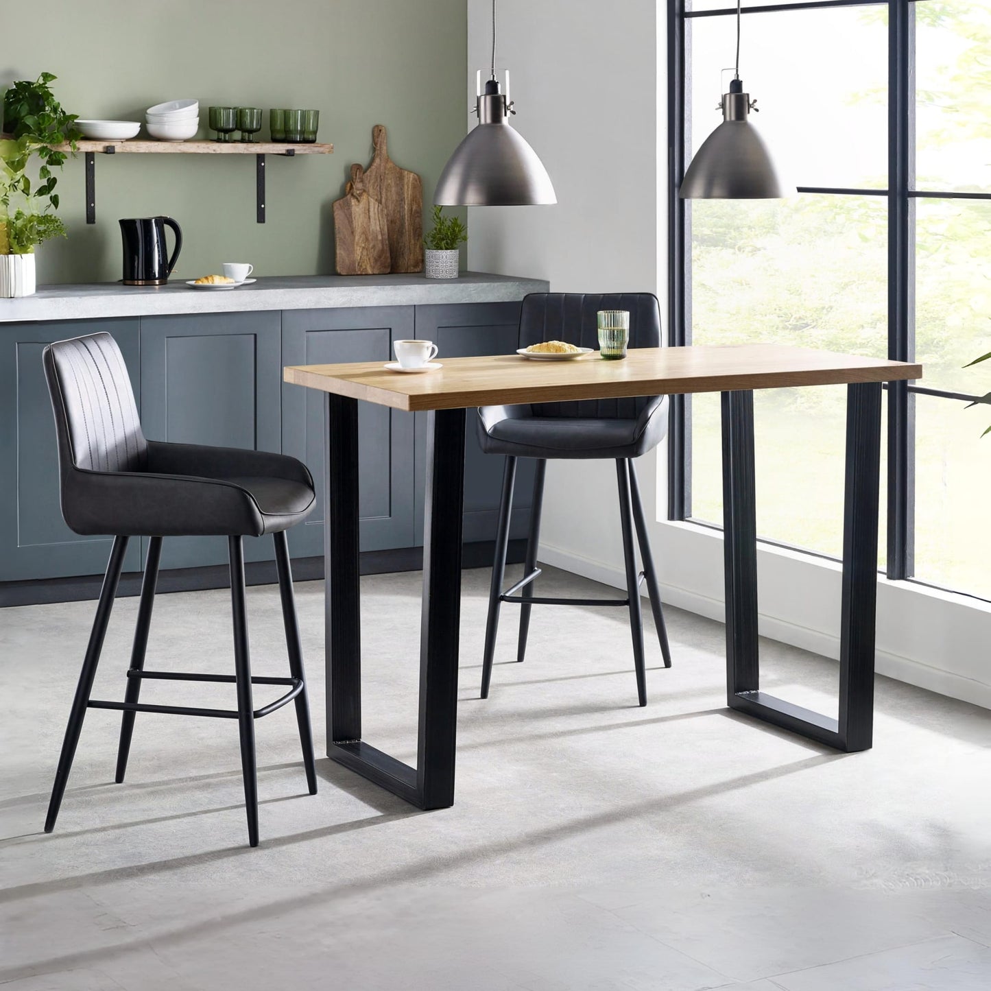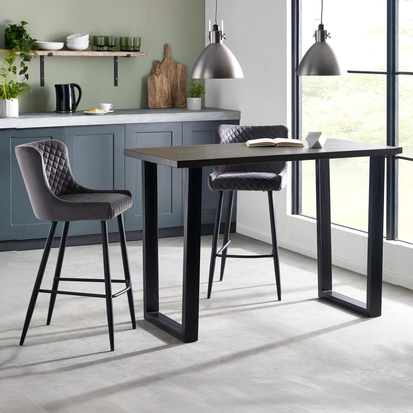 - Pair with a bright coloured velvet bar stool for a modern look, or some industrial leather bar stools for a more retro look.