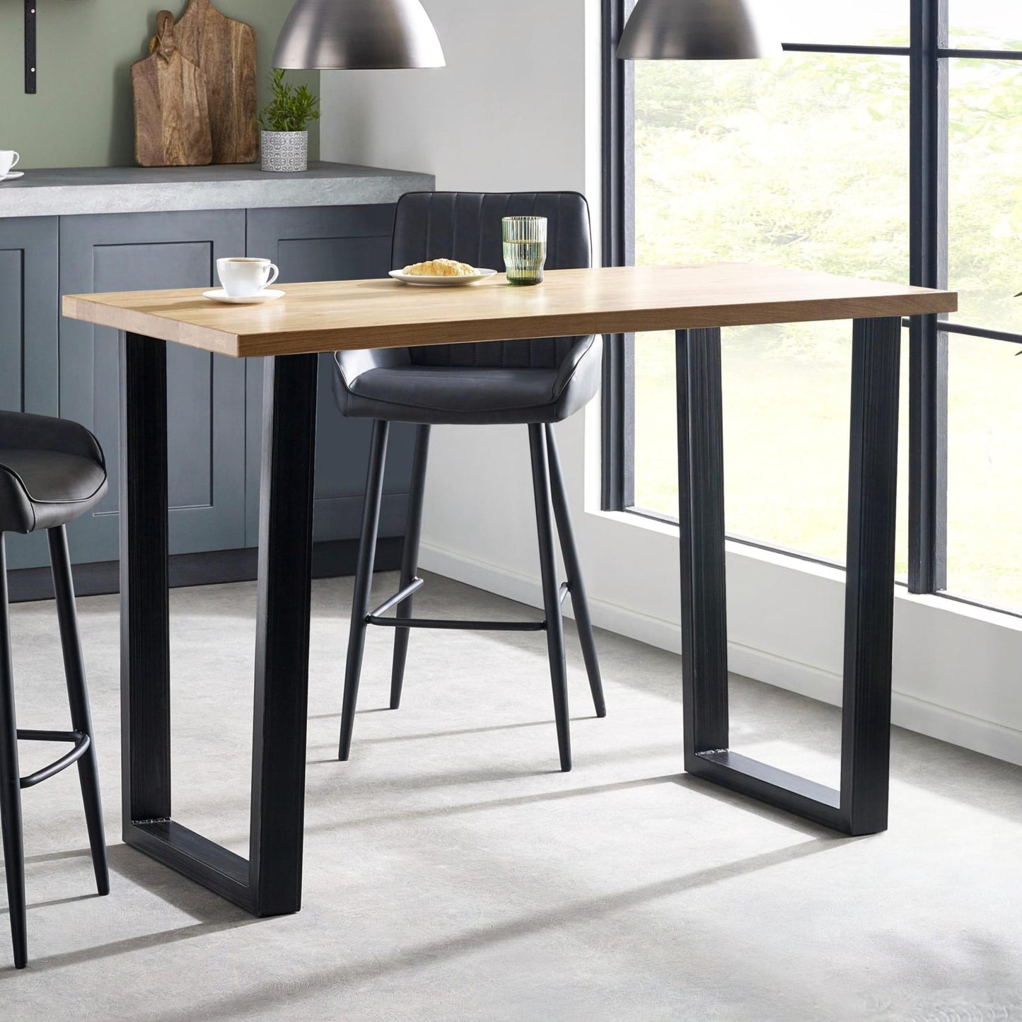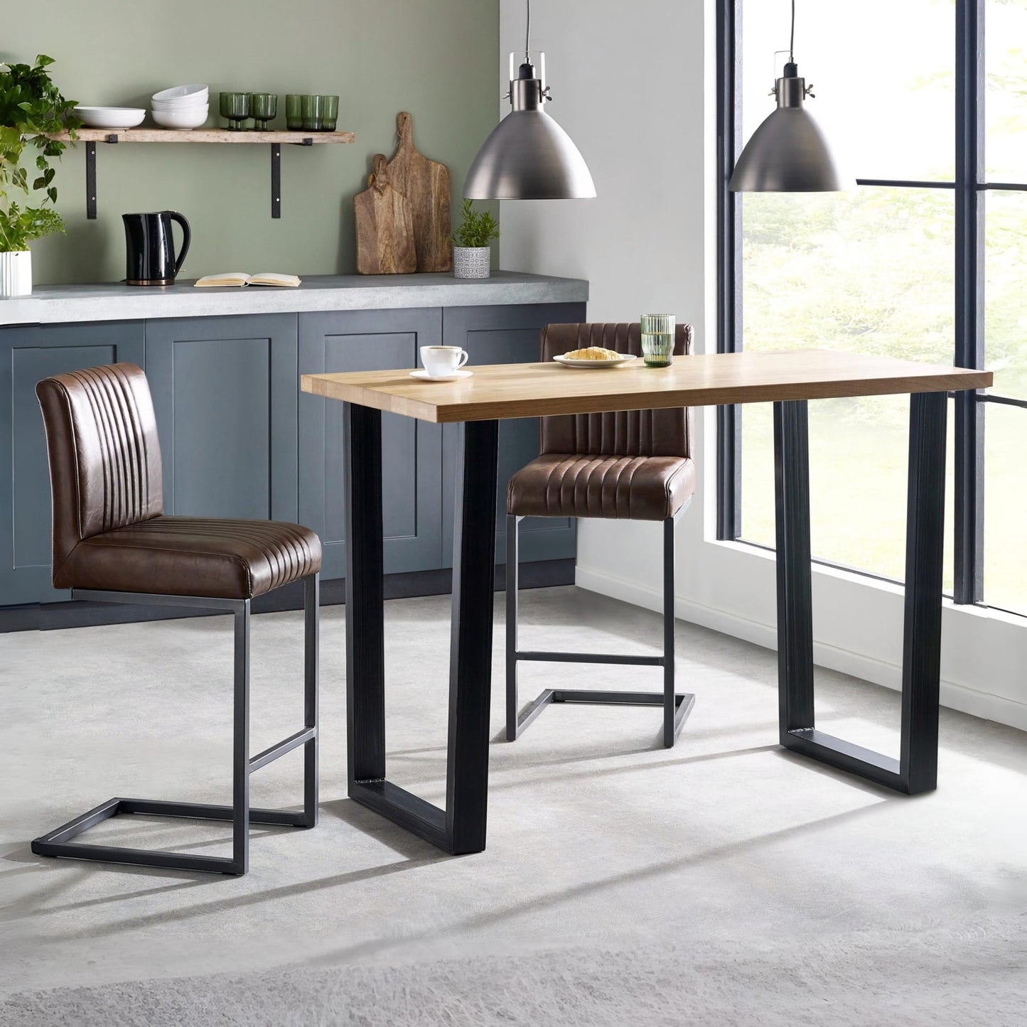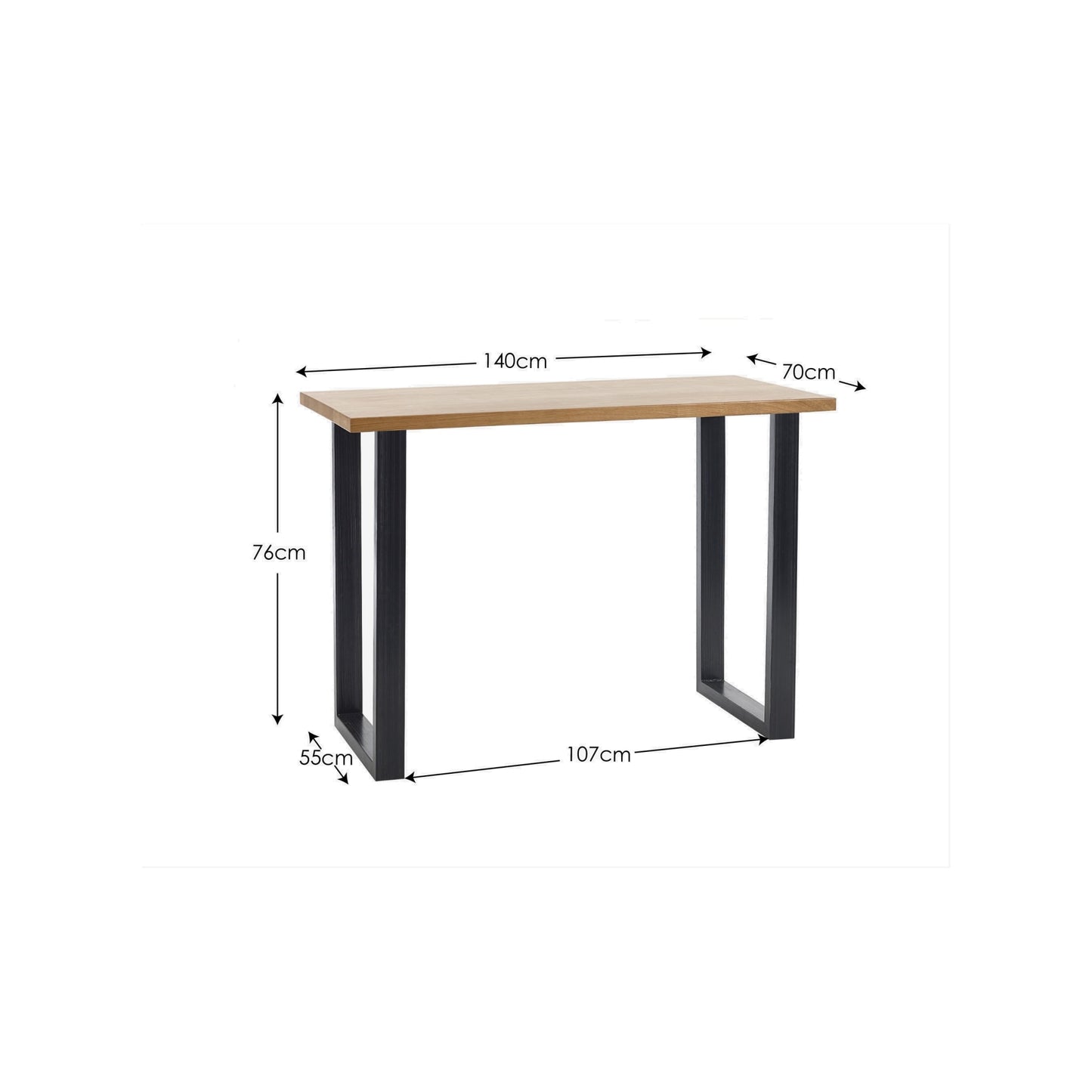 Made from solid oak, this bar table offers a rustic finish emphasising the oak wood grain. The Brooklyn Bar Table offers a vintage edge featuring industrial trapeze style metal legs. Perfectly pair with our wide range of beautiful upholstered bar stools.