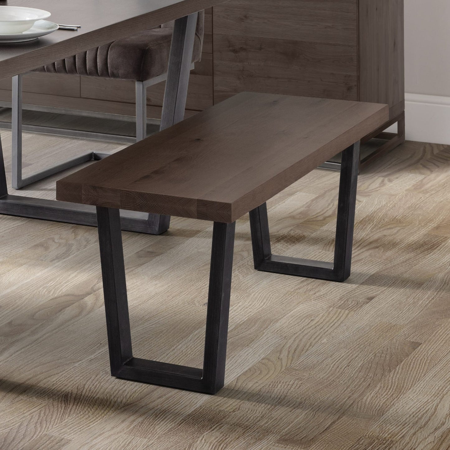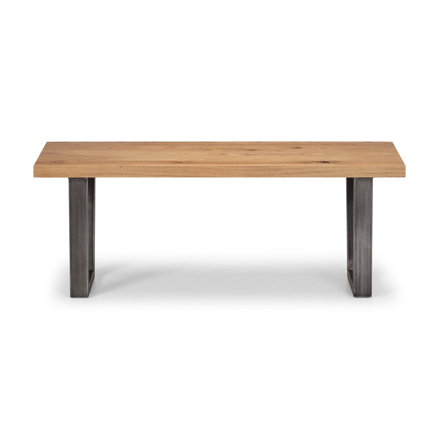 Made from solid oak, this bench offers a rustic finish emphasising the stunning natural wood grain. The Brooklyn Bench offers a vintage edge featuring industrial trapeze style metal legs. This spacious bench can seat up to 2 people, perfect for a wide range of modern decor. Part of the Julian Bowen Brooklyn Dining and Occasional Collection.