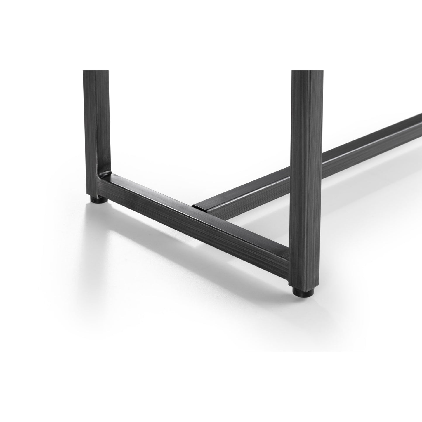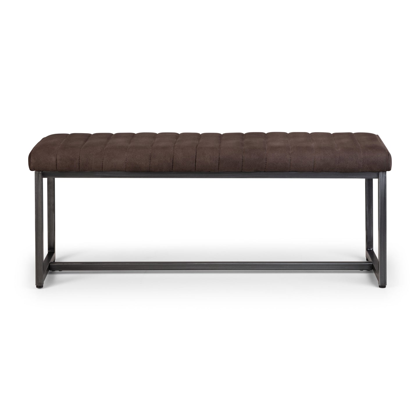 The Brooklyn Upholstered bench brings an industrial, retro design to any dining room. Finished in a charcoal grey suede, upon an industrial style gunmetal frame this bench is the perfect match for the Brooklyn Dining Table. Part of the Julian Bowen Brooklyn Dining and Occasional Collection.