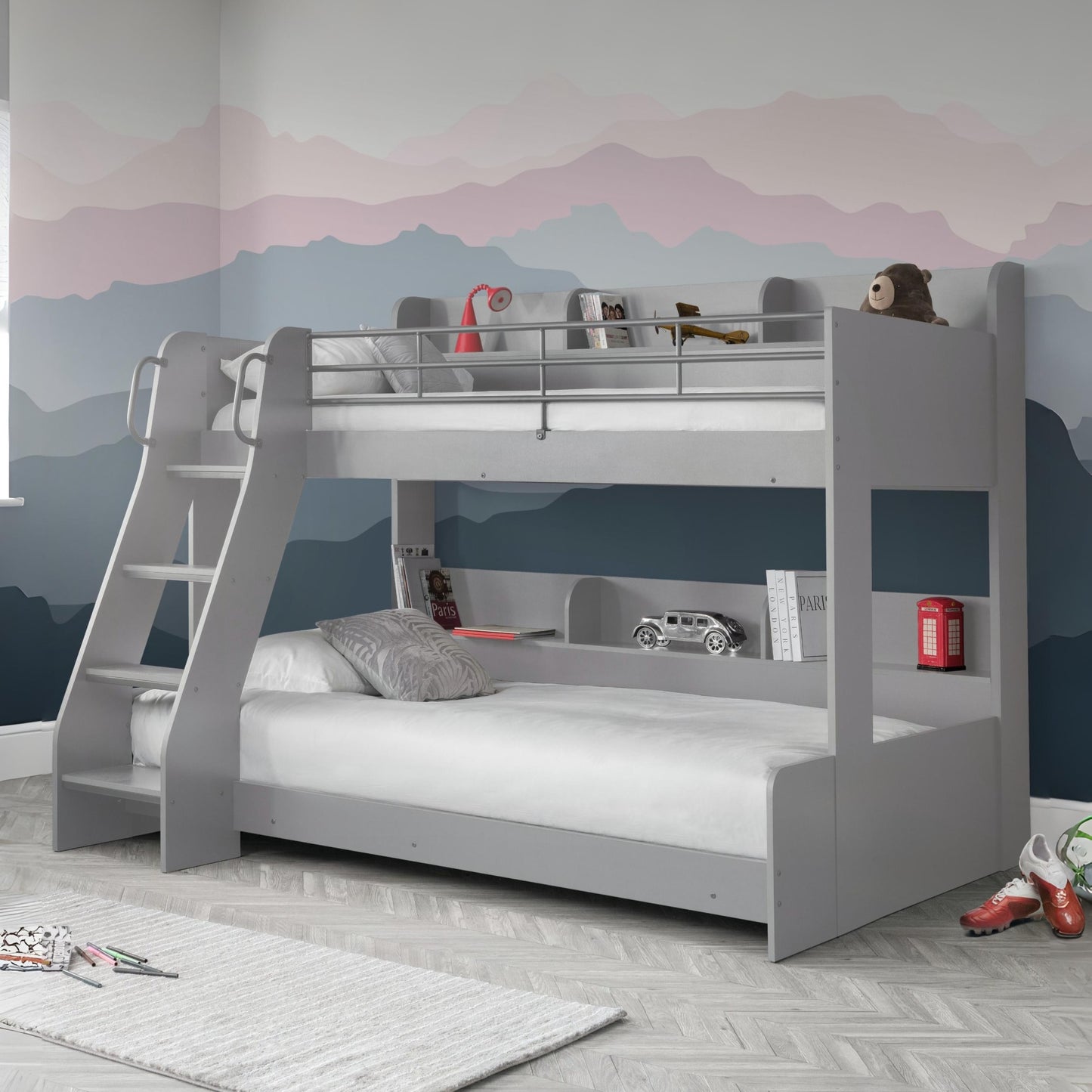 In a choice of white or light grey finish, the Domino Triple Sleeper is the perfect bed for your little ones. With the lower bunk accommodating two children, and the top bunk an additional one, Domino maximises floor space by combining three sleeping solutions using the space of one. Multifaceted and extremely functional in design, this bed can be adapted to suit your child’s needs. The classic design and finish of this bed means it is not limited to children’s bedrooms but is ideal for guestrooms too.