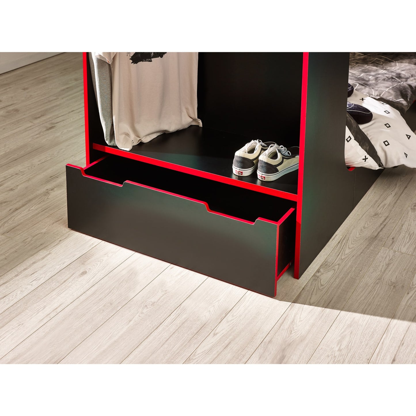 • Elevate Your Game: The Julian Bowen Impact Gaming Bunk in sleek Black & Red is designed for gamers, featuring built-in shelving for all your gaming gear, making it the perfect place to sleep, play, and stream.