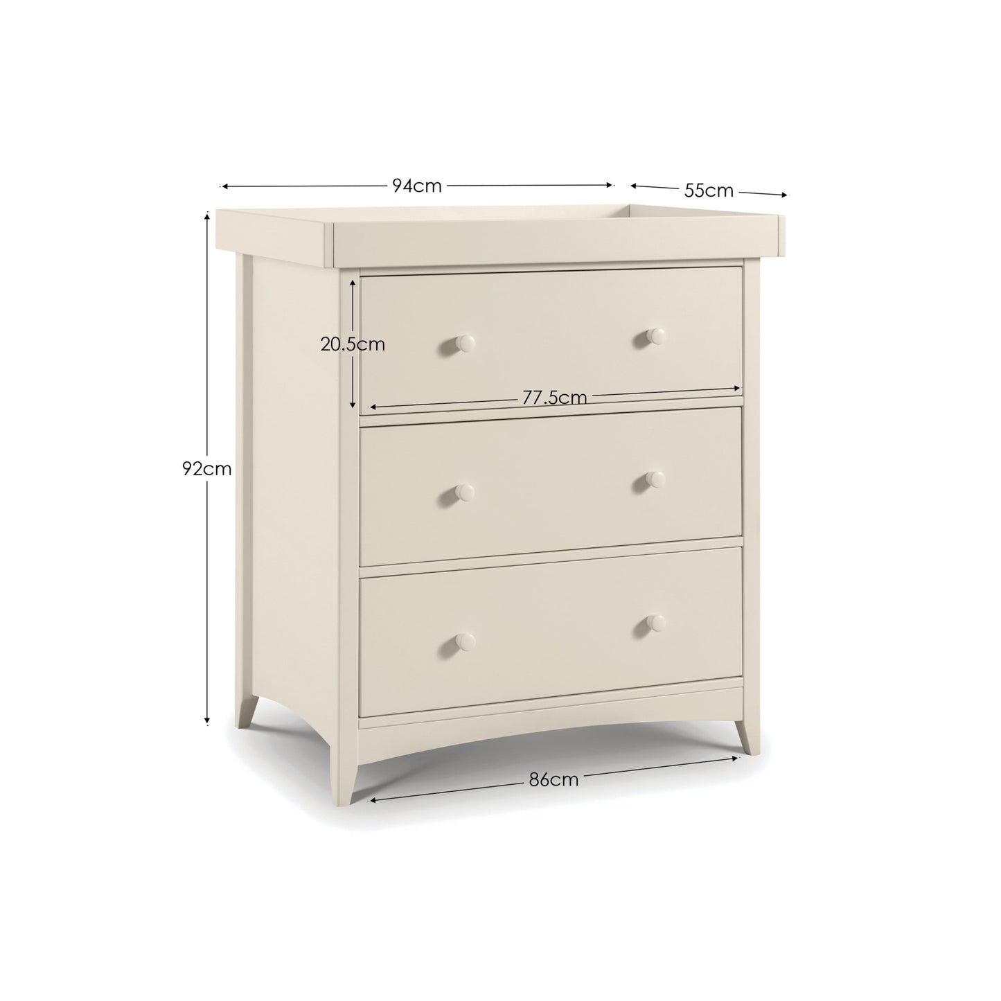 • Elegant Stone White Finish: Crafted with a beautiful stone white finish, this changing station adds a touch of elegance to any nursery. Durable Construction: Made from high-quality materials ensuring long-lasting use. Ample Storage: Features multiple shelves and drawers for convenient storage of baby essentials. Safe and Secure: Designed with safety rails to keep your baby secure during changing. Easy to Clean: Smooth surfaces make cleaning a breeze.