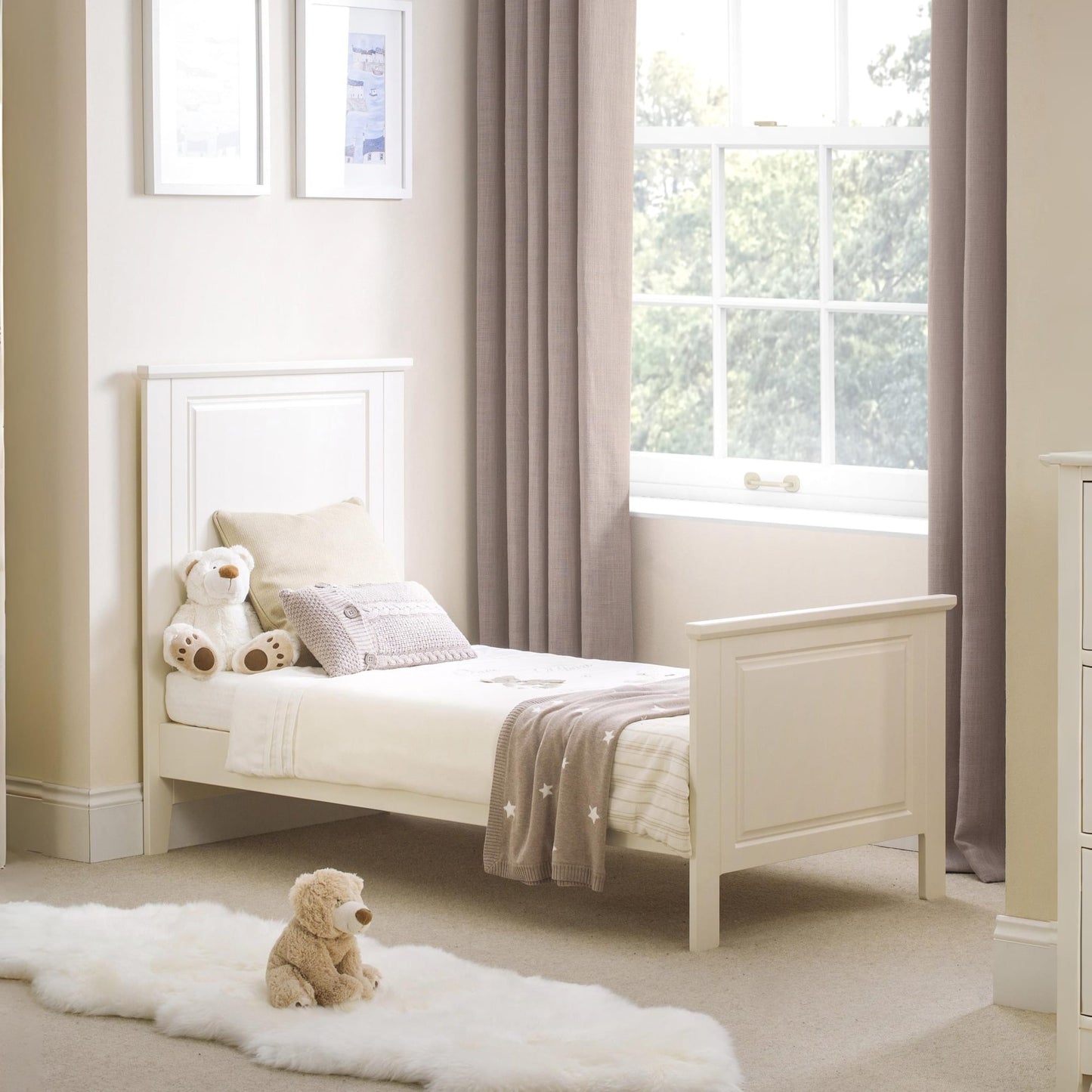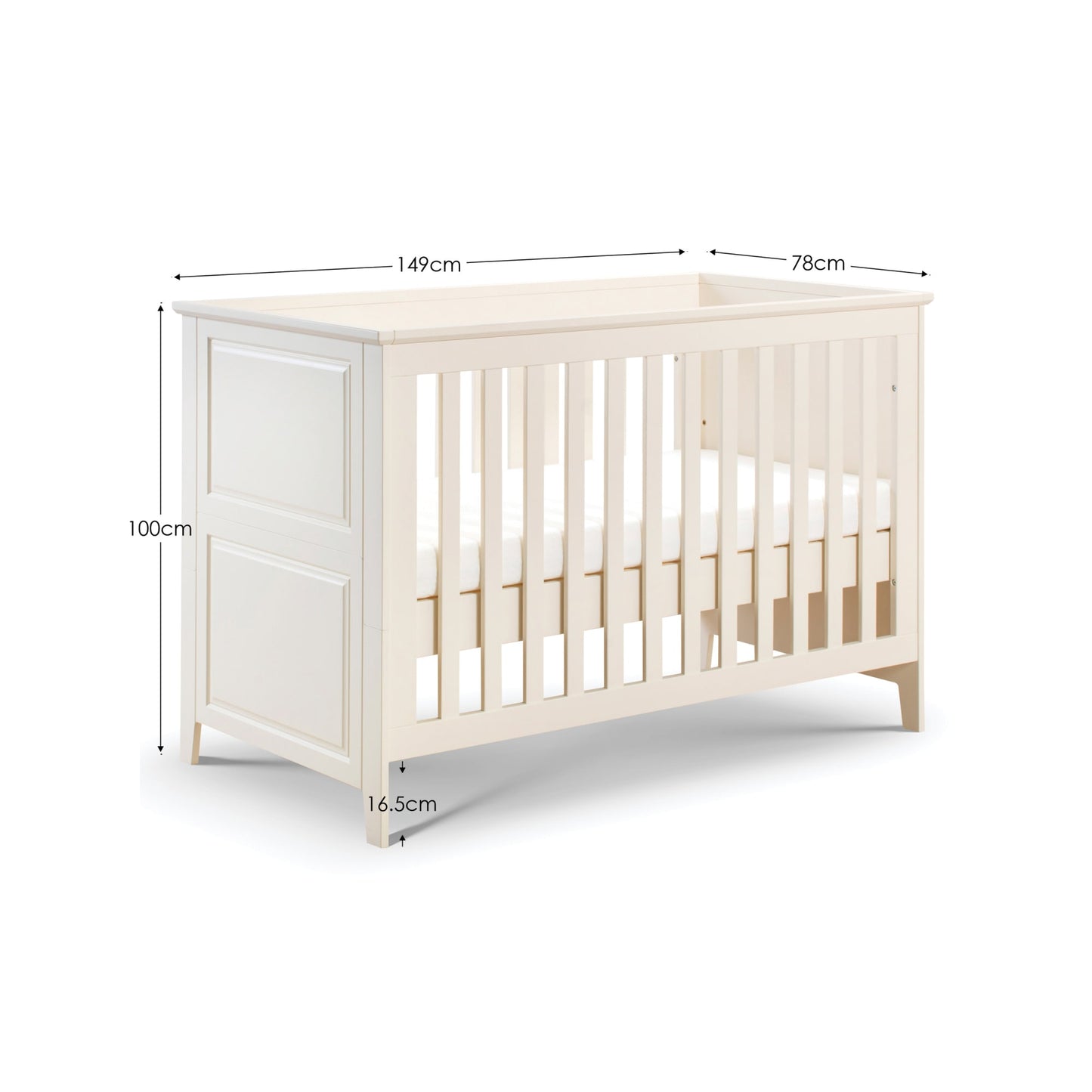 • Elegant Design: Features a classic stone white finish for a timeless look. Convertible: Easily converts from a cot to a toddler bed. Sturdy Construction: Made from high-quality materials ensuring durability. Safe and Secure: Designed with safety rails to keep your baby secure. Comfortable Sleeping Area: Provides a comfortable sleeping space for your baby.