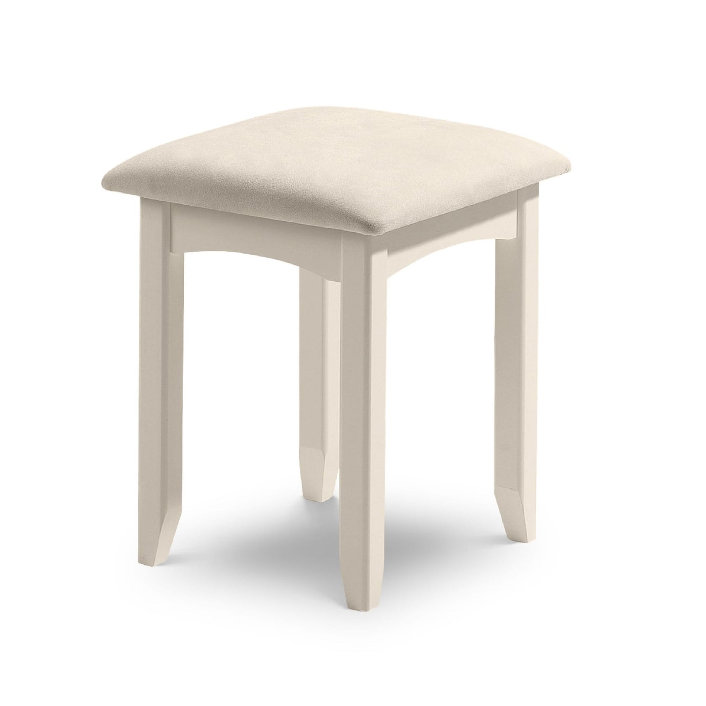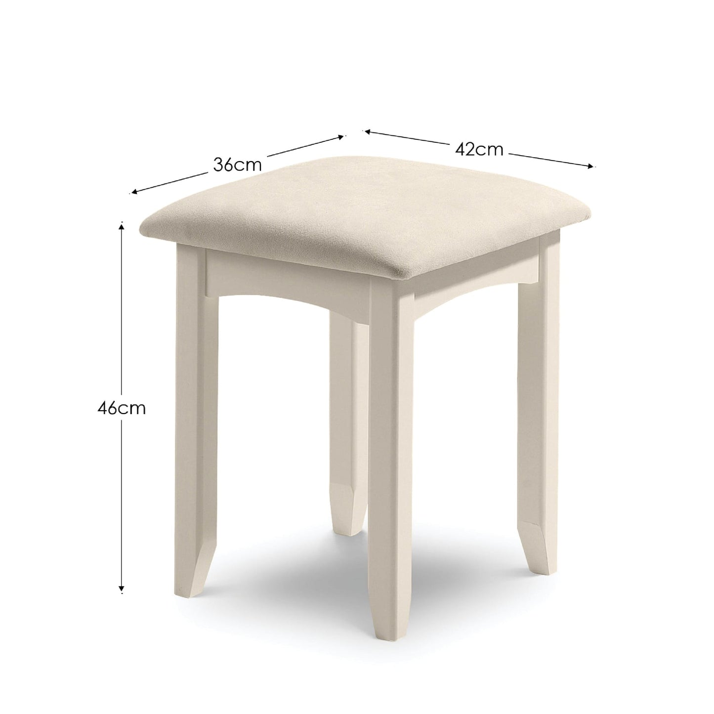 Cameo is a beautiful stone white lacquered bedroom range. Its timeless shaker design is the perfect accompaniment to any interior style and is perfect for grown-up bedrooms and children's bedrooms alike. Solid pine frames ensure a sturdy and durable construction. A stone white lacquered, shaker style stool with faux suede seat pad that accompanies the Cameo dressing table (sold separately).