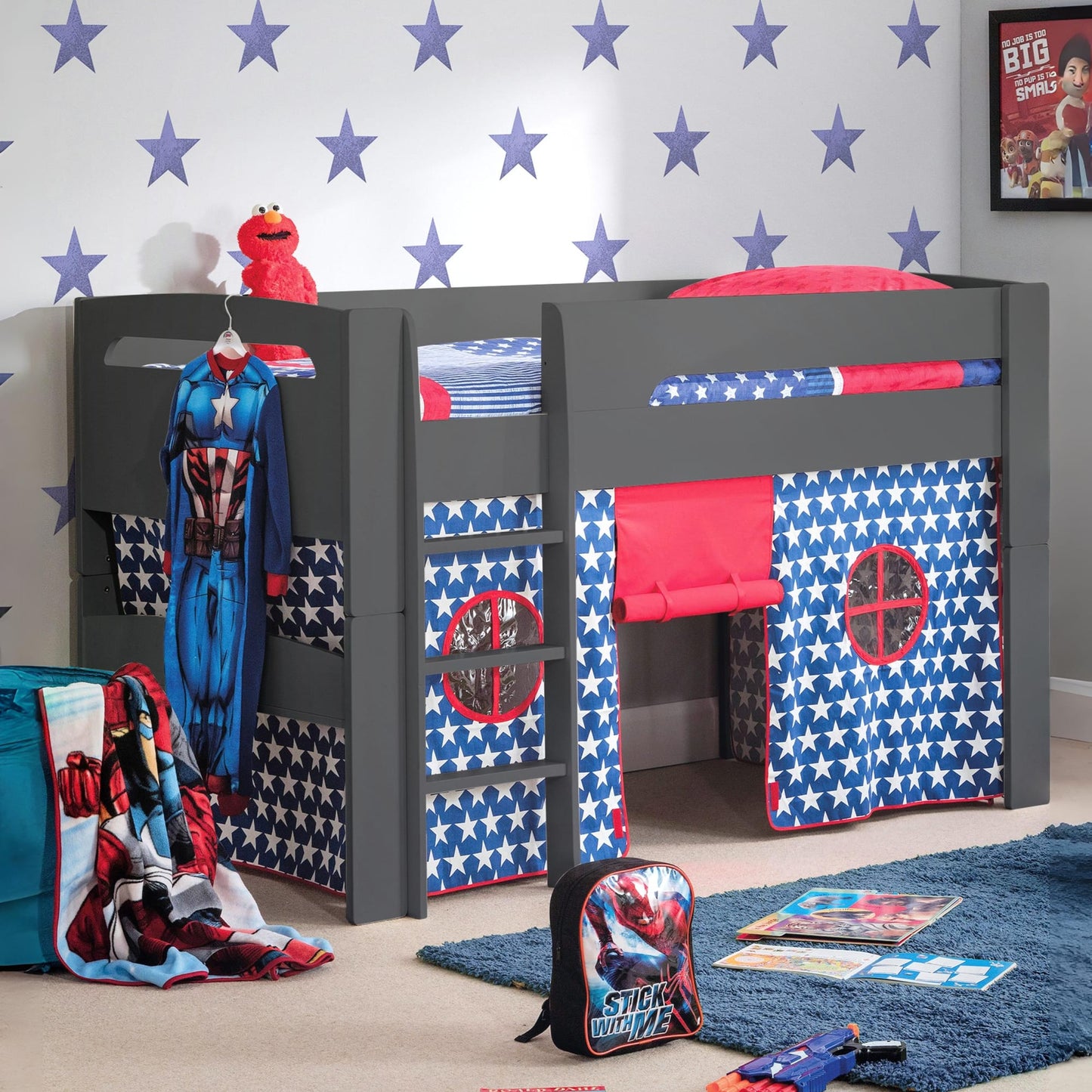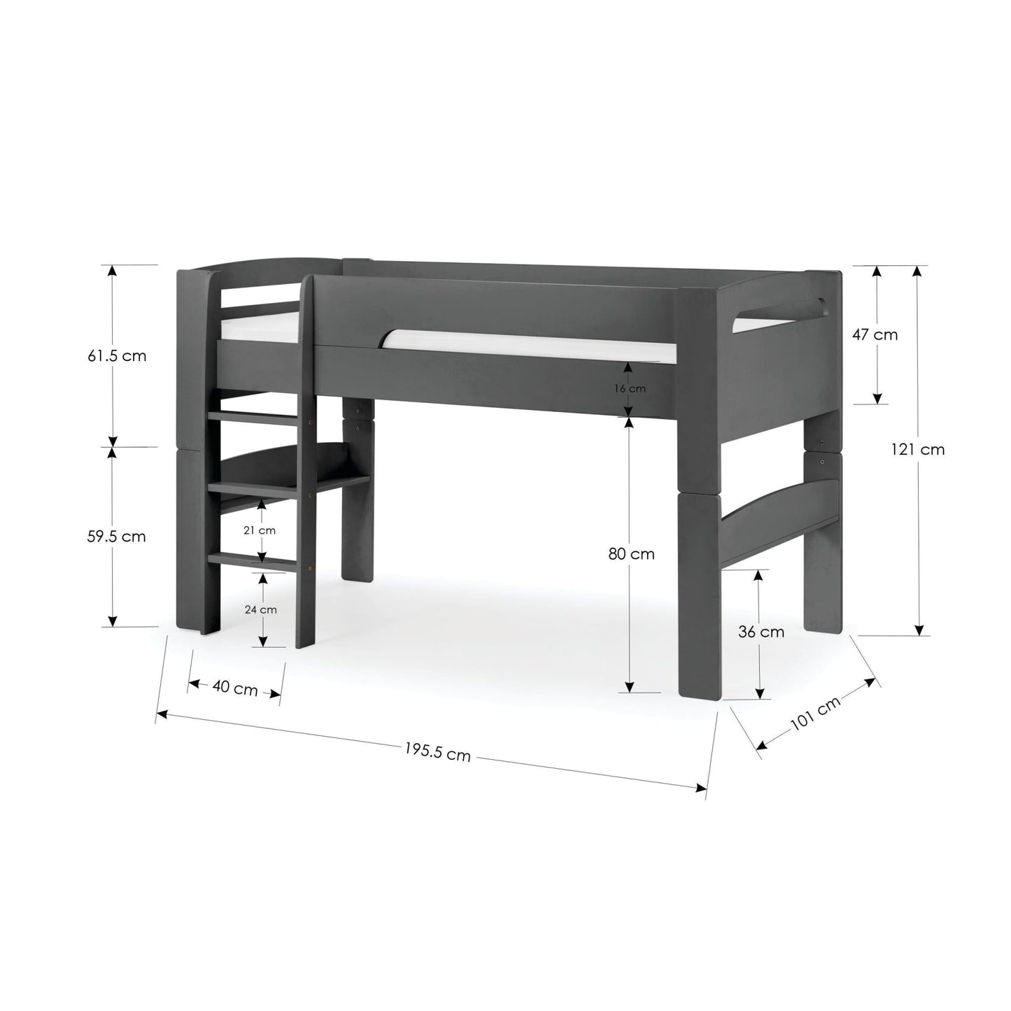 - The Pluto Midsleeper is a sturdy and stylish mid-sleeper finished in a smooth Anthracite lacquer. This item will require self-assembly..