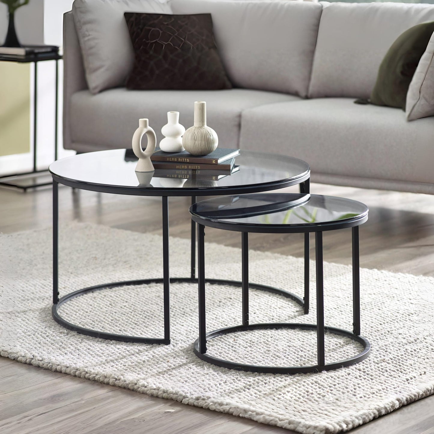 | Name | Chicago Round Nesting Coffee Tables Smoked Glass |