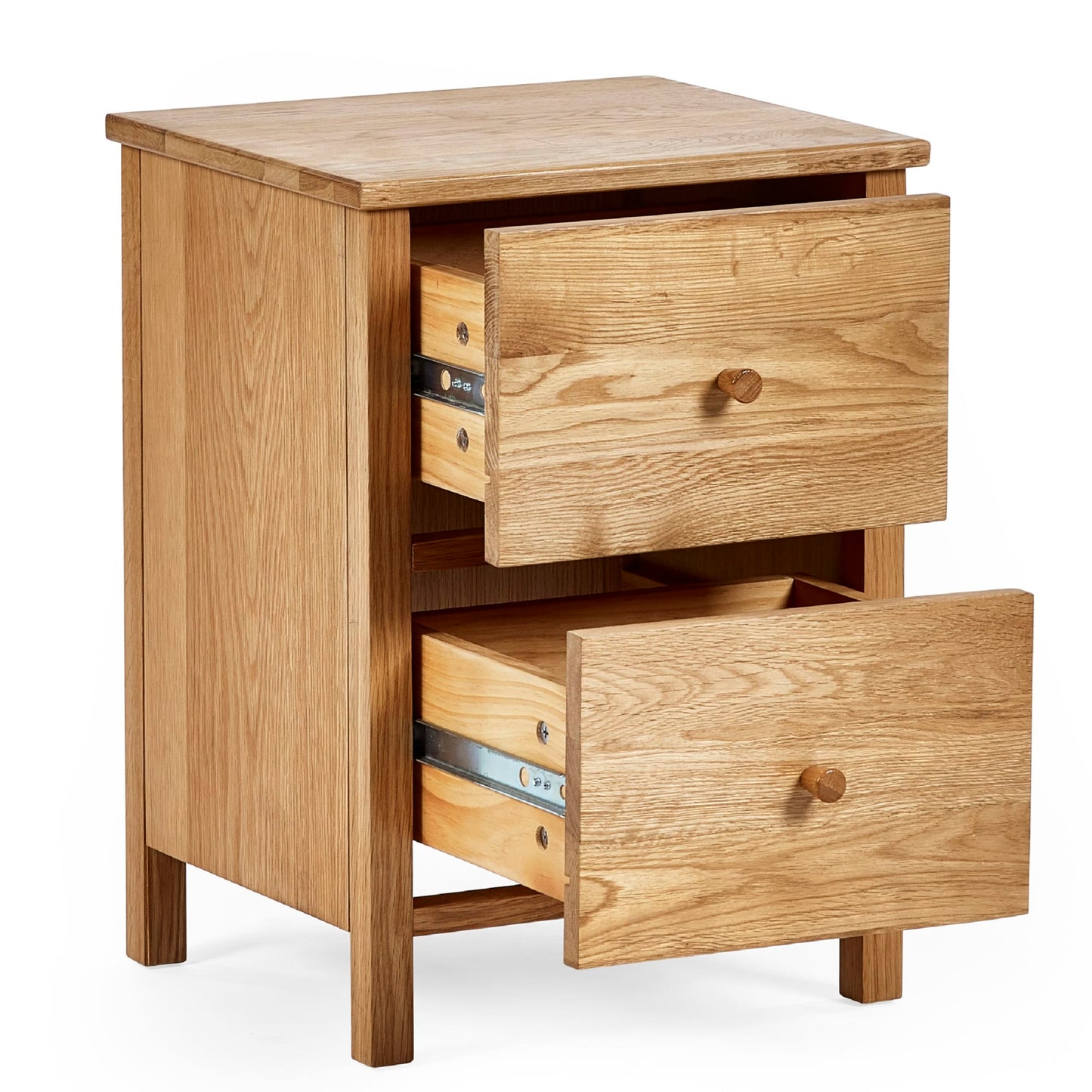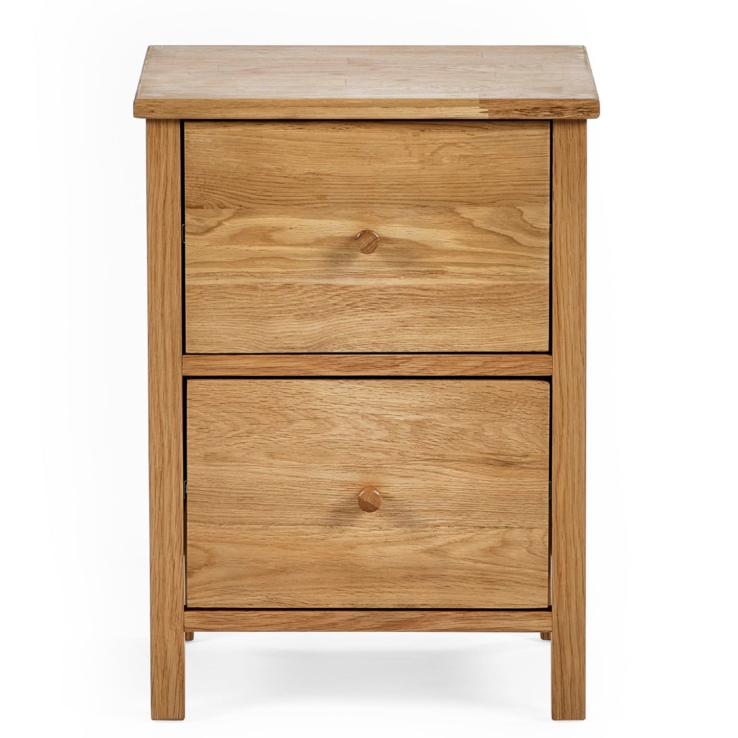 Add a touch of rustic charm to your bedroom with the Coxmoor 2 Drawer Bedside in oak. Featuring two spacious drawers with knob handles, this bedside table provides ample storage for all your nighttime necessities, while the rich oak finish brings warmth and character to your space. The compact yet functional design is perfect for smaller rooms or adding an extra storage solution. With its classic look and durable build, this bedside table seamlessly combines style and function, making it a versatile and practical addition to your bedroom. Simple assembly required.