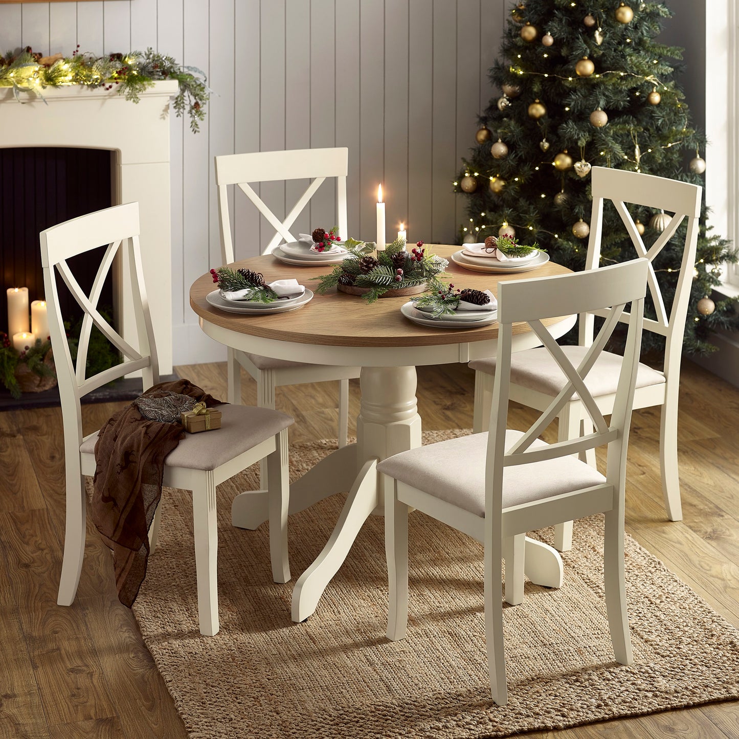 • Elegant Design: Features a timeless cross-back frame with an ivory finish, perfect for adding a touch of elegance to any dining space. Ideal for both modern and traditional interiors.