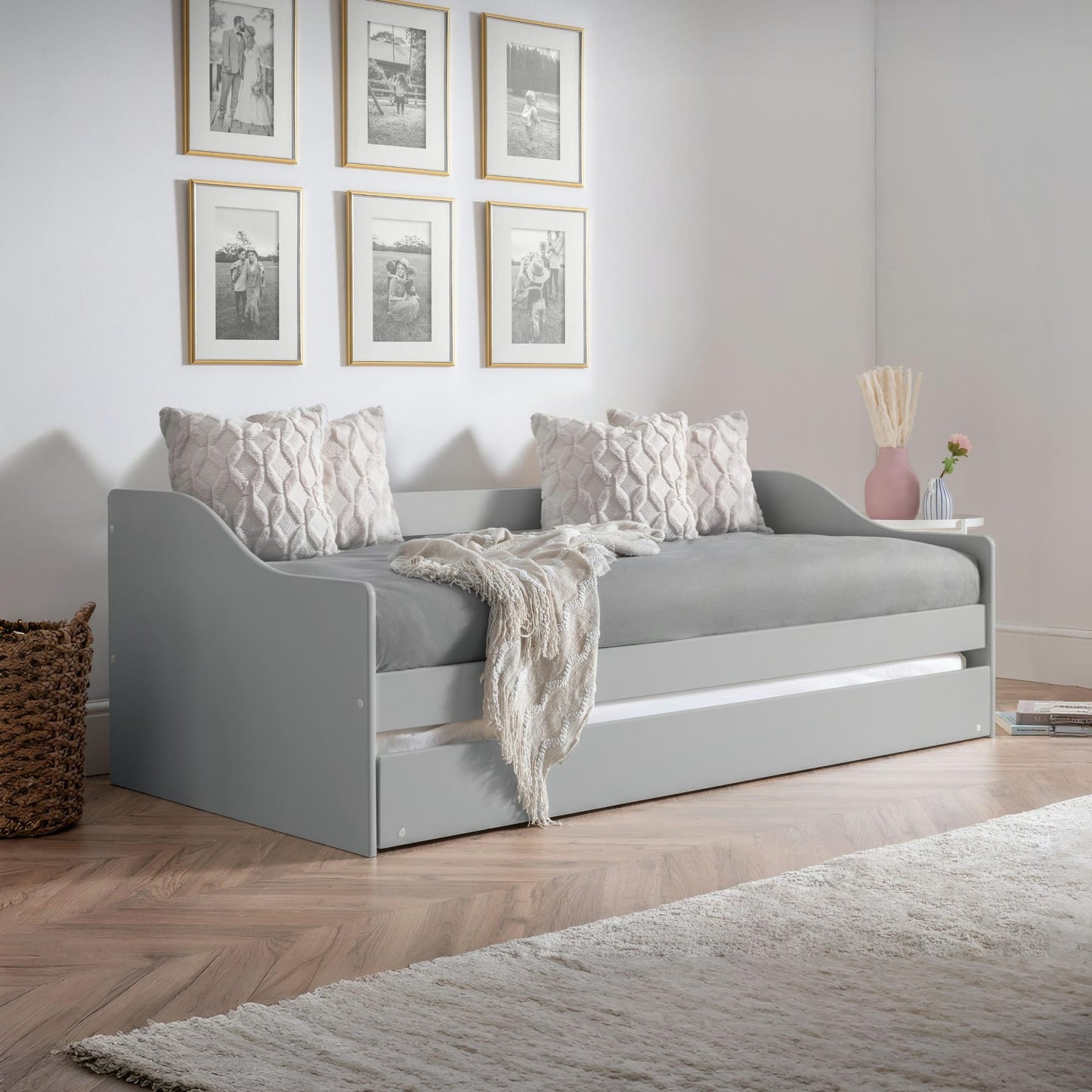 With a sleek curved design, the Elba daybed comes in three beautiful finish options of Surf White, Dove Grey, or Anthracite. Perfect for casual use, or as a guest bed with the classic pull out underbed.