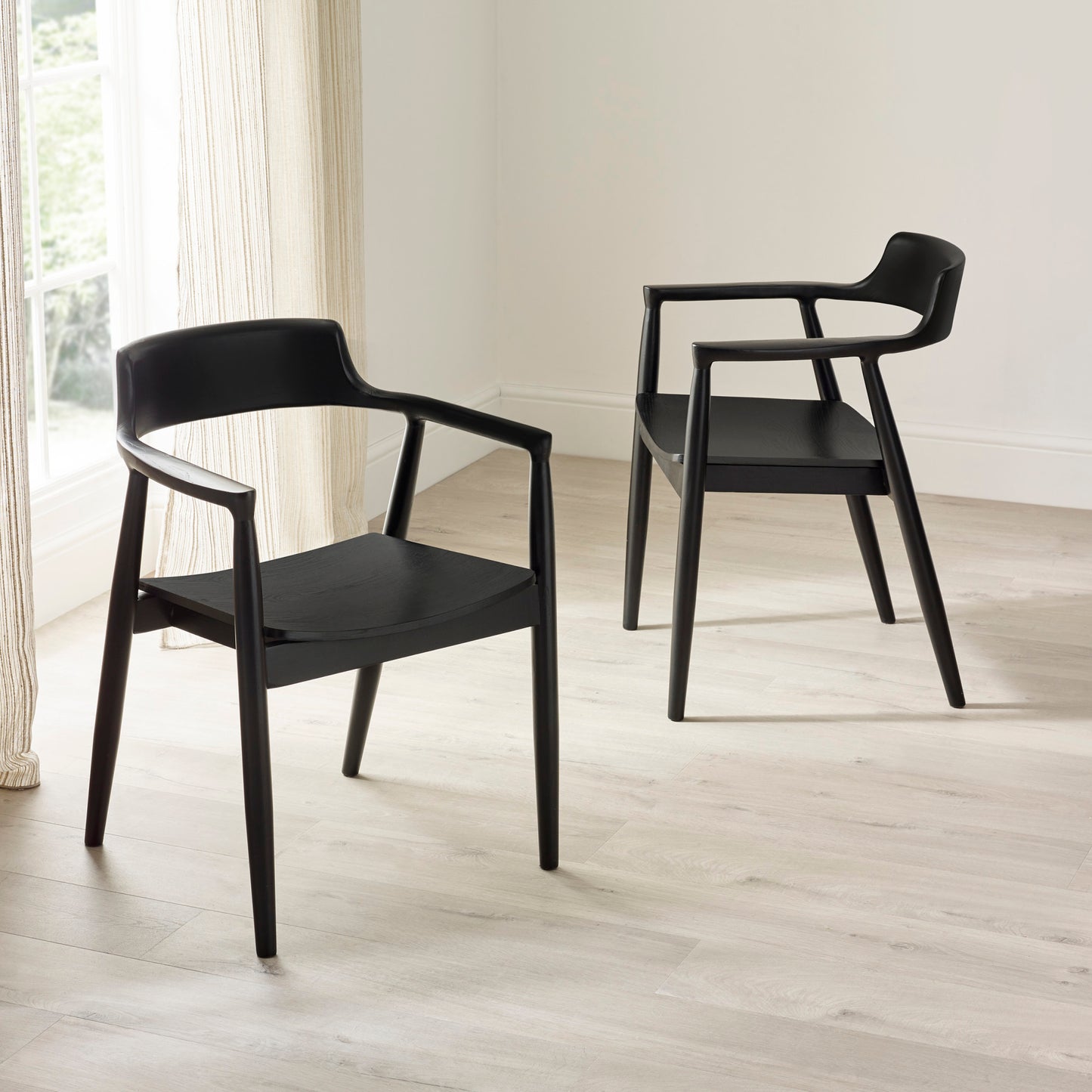 "Elevate your dining space with a chair that’s as comfortable as it is stylish. This modern black dining chair with arms combines clean contemporary lines with a sculptural silhouette, creating an effortlessly refined look for kitchens, dining rooms, and work-from-home spaces.