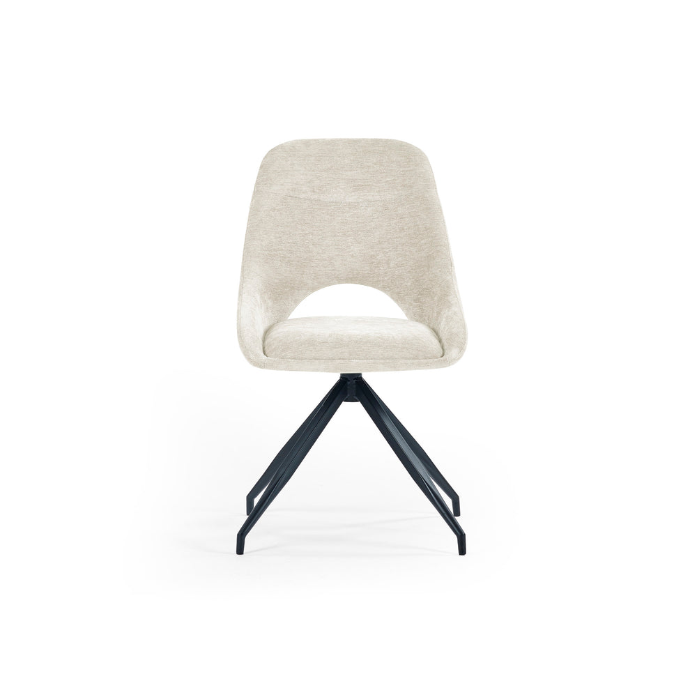 Add a sleek, modern edge to your space with these effortlessly stylish swivel dining chairs. Upholstered in a scrumptious grey chenille fabric, it features a generously wide, cushioned seat designed for relaxed comfort during meals or everyday use. The smooth return swivel function makes movement feel effortless, while the bold black metal base provides a striking contrast and sturdy support. Ideal as statement dining room chairs, they bring a refined, contemporary touch to any interior. Assembly is simple, just attach the base. Table sold separately.