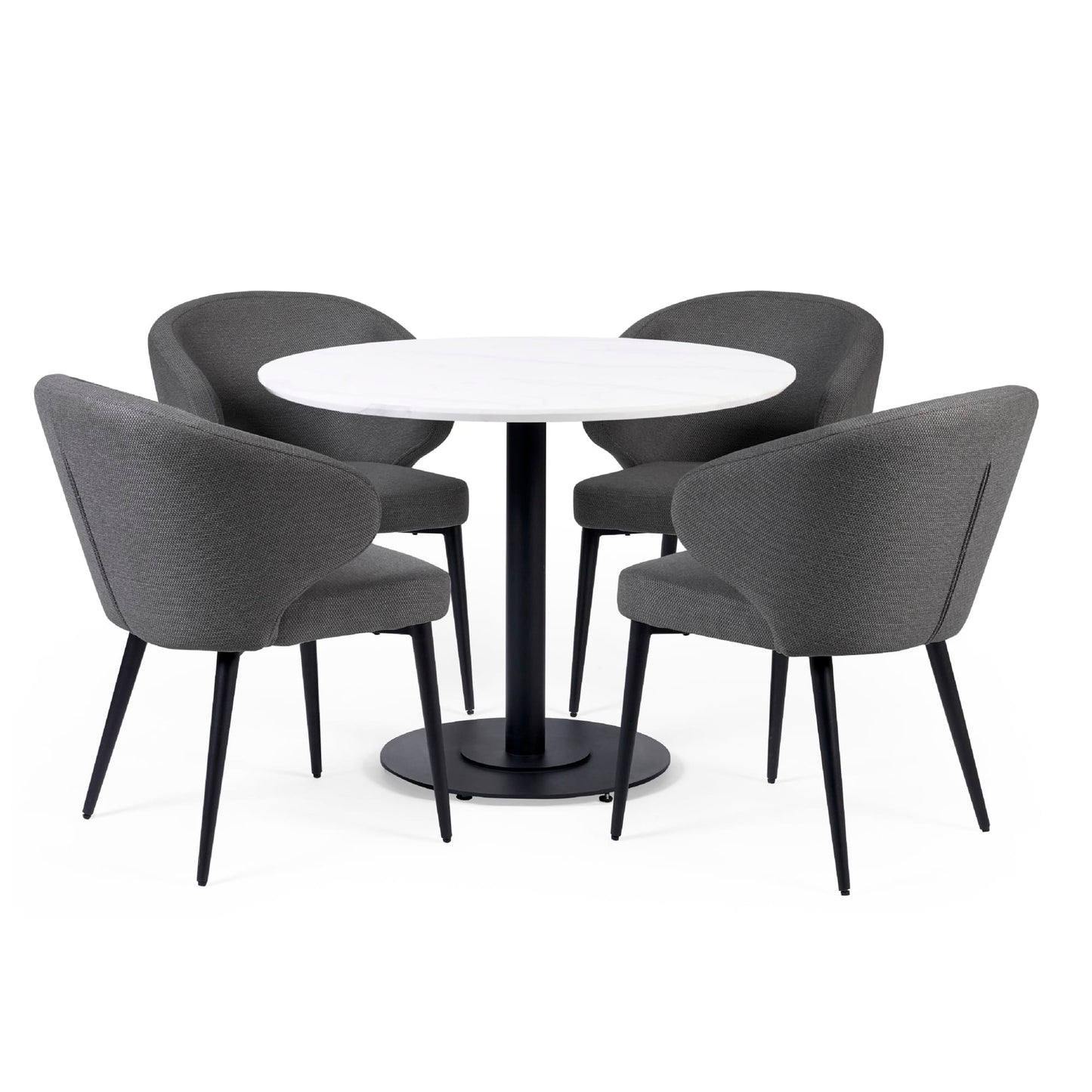 - COMFORTABLE SEATING: Covered in soft, durable mid grey fabric, offering a cosy and supportive seating experience for everyday dining.