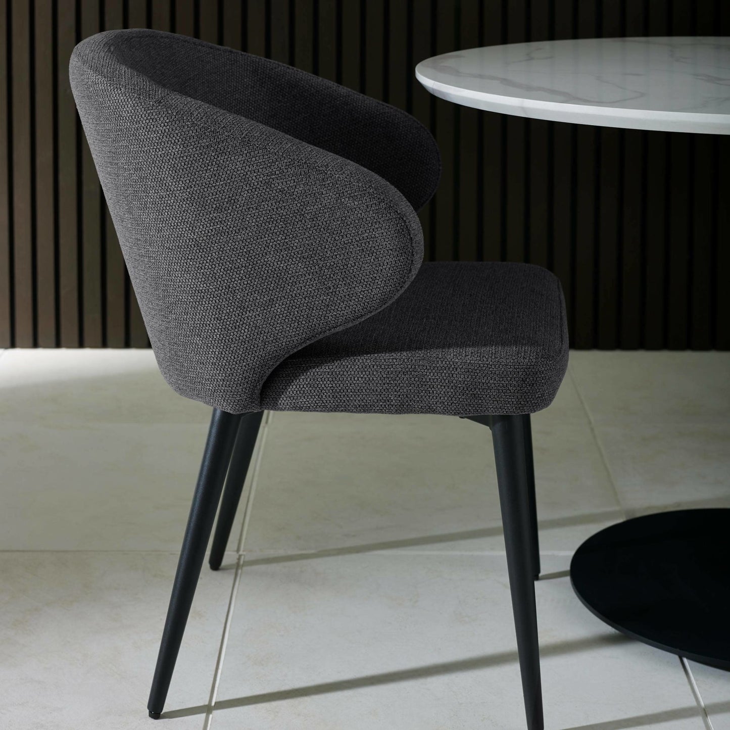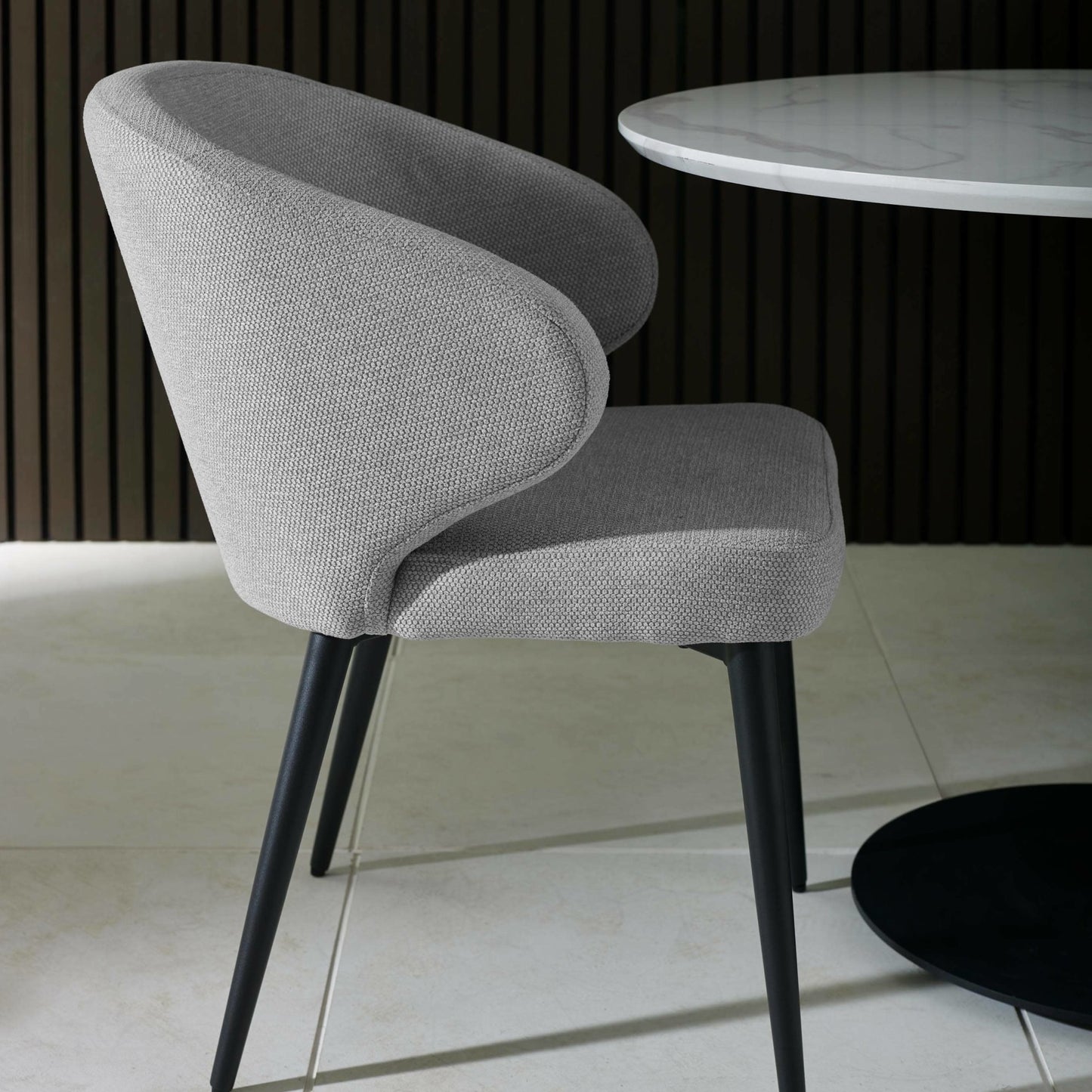 Add contemporary charm to your dining space with this elegant mid-grey dining chair. Upholstered in soft, durable linen-type fabric that is hypoallergenic and free from harmful materials, it complements a wide range of interior styles while offering a comfortable seating experience. The curved-shaped backrest is ergonomically designed to provide excellent support, making it ideal for everyday use. With sturdy legs for long-lasting stability. Easy assembly ensures a hassle-free setup.