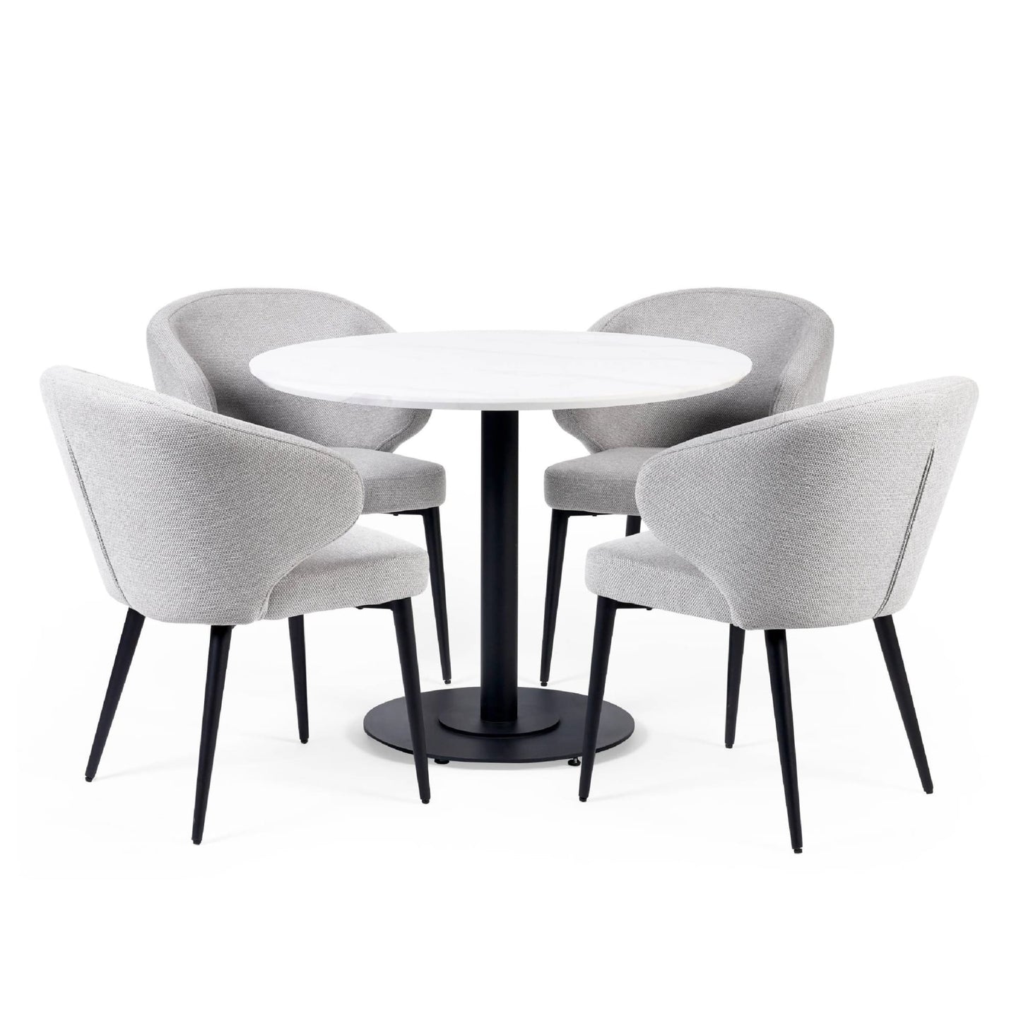 - COMFORTABLE SEATING: Covered in soft, durable light grey fabric, offering a cosy and supportive seating experience for everyday dining.
