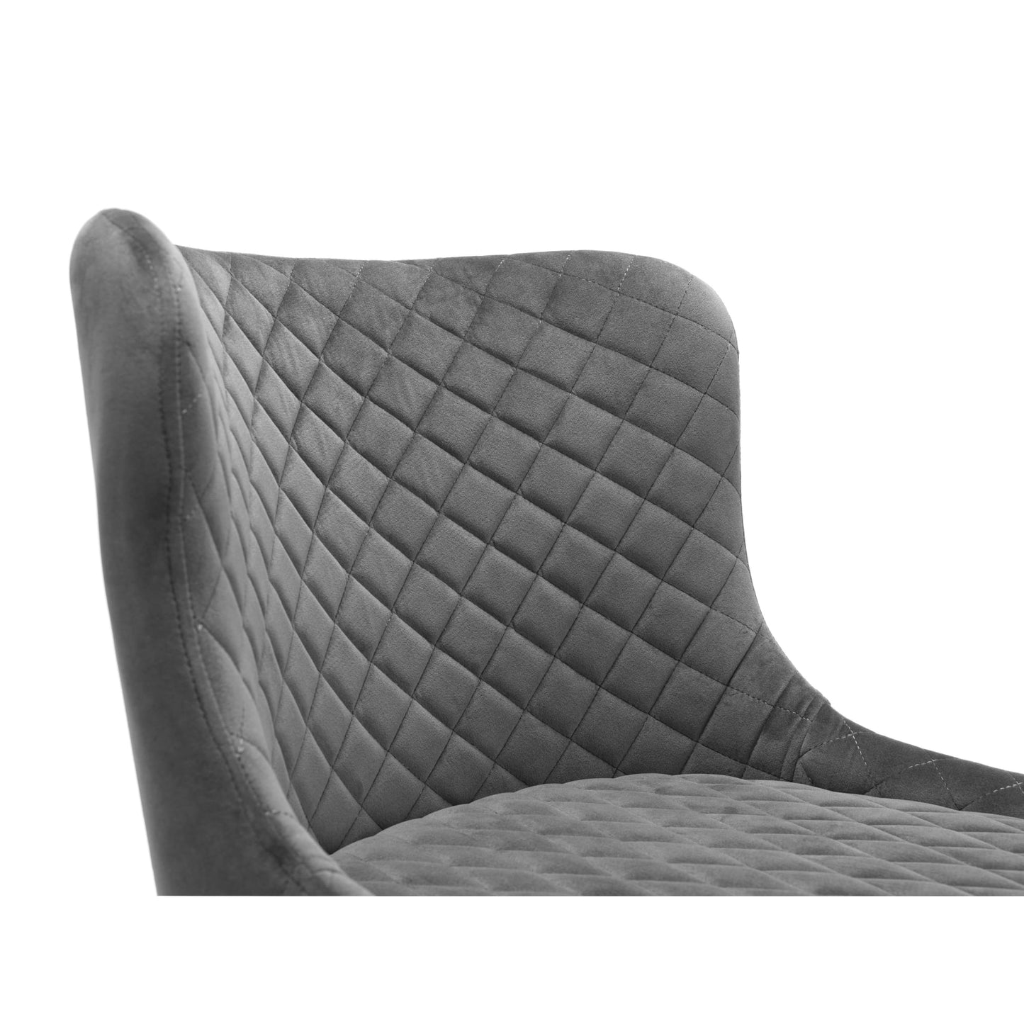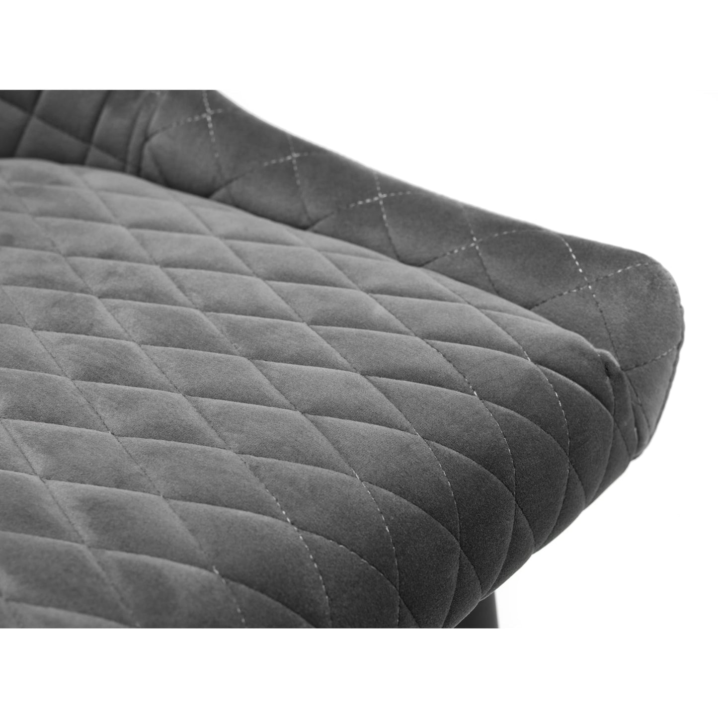 - Upholstered in luxurious grey velvet fabric with quilted detailing.