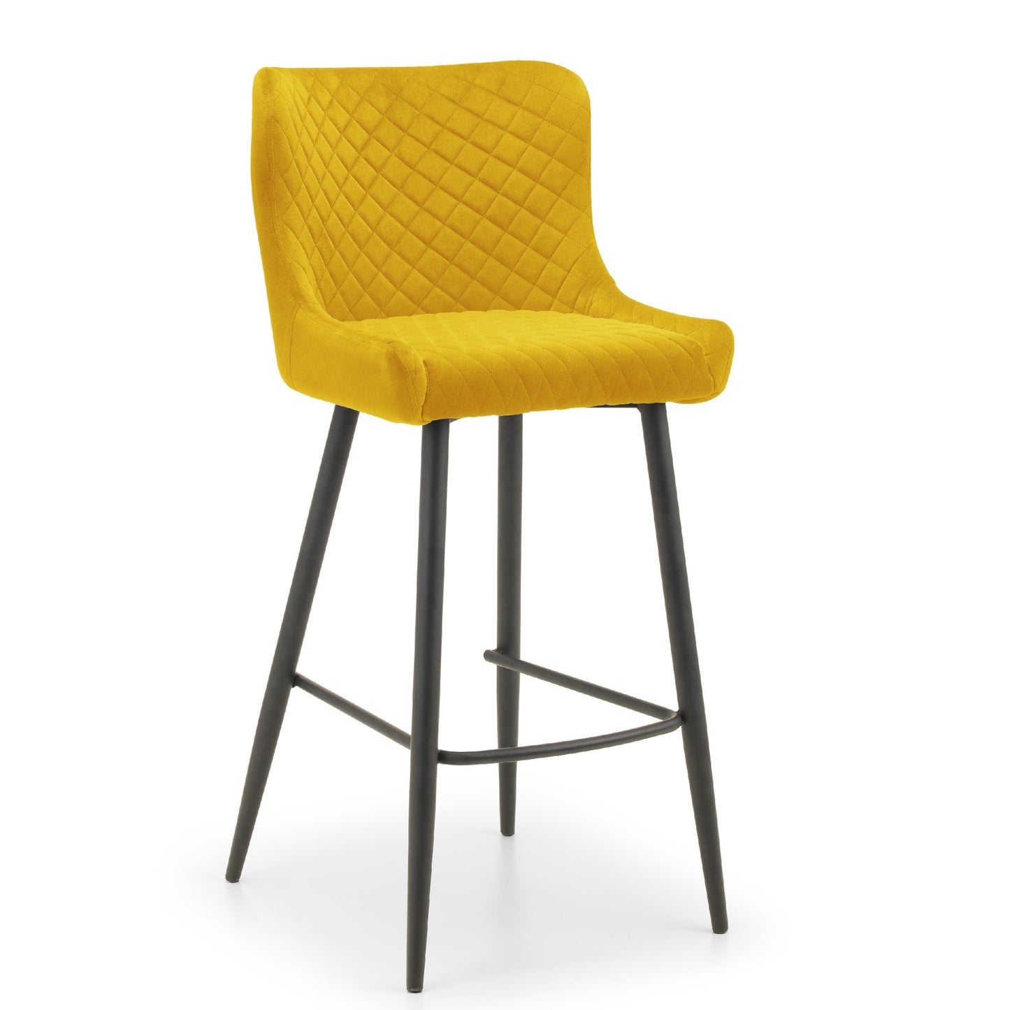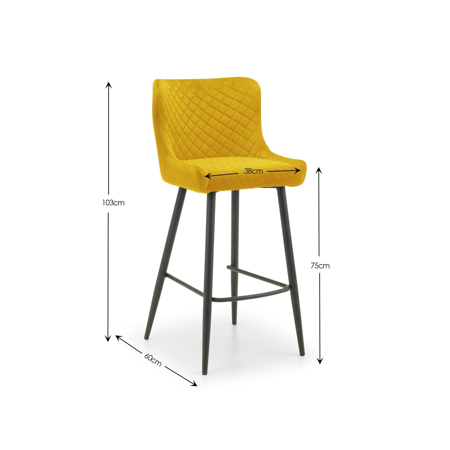 - Luxurious Velvet Upholstery: The Julian Bowen Luxe Velvet Bar Stool features plush mustard velvet upholstery, adding a touch of luxury and comfort to your dining or bar area. The soft and smooth fabric provides a cozy seating experience, making it a stylish and functional addition to your home.