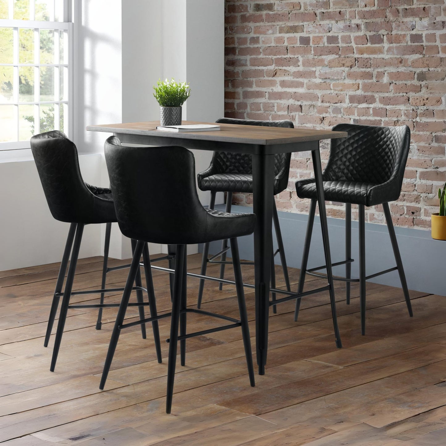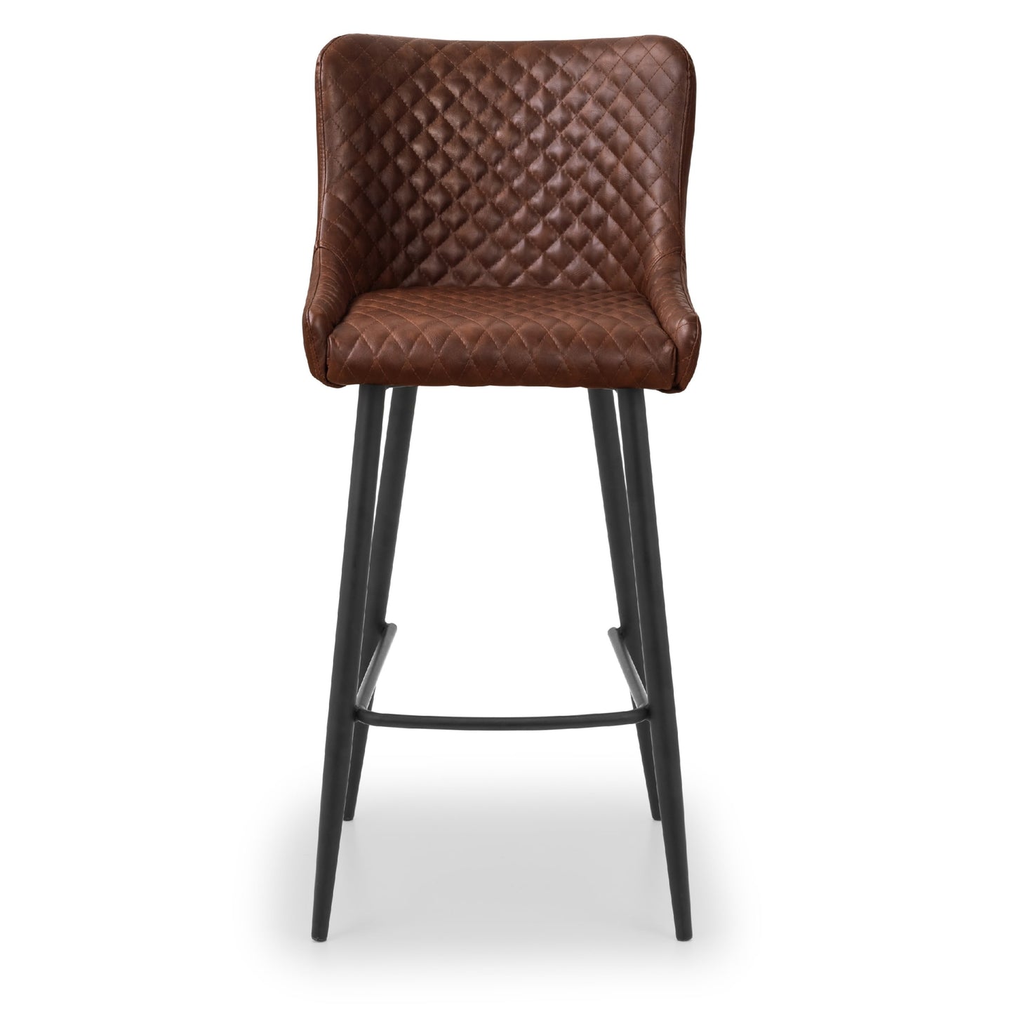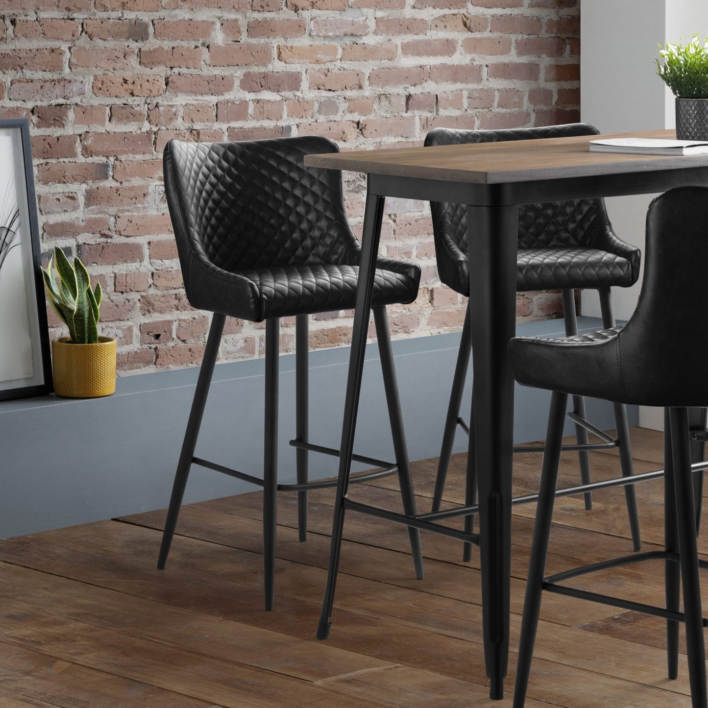Combining a classic style with a modern twist, the Luxe bar stool is beautifully upholstered in faux leather with luxurious quilted detailing. Featuring contemporary black painted legs, this dining chair adds an industrial feel to any dining area.