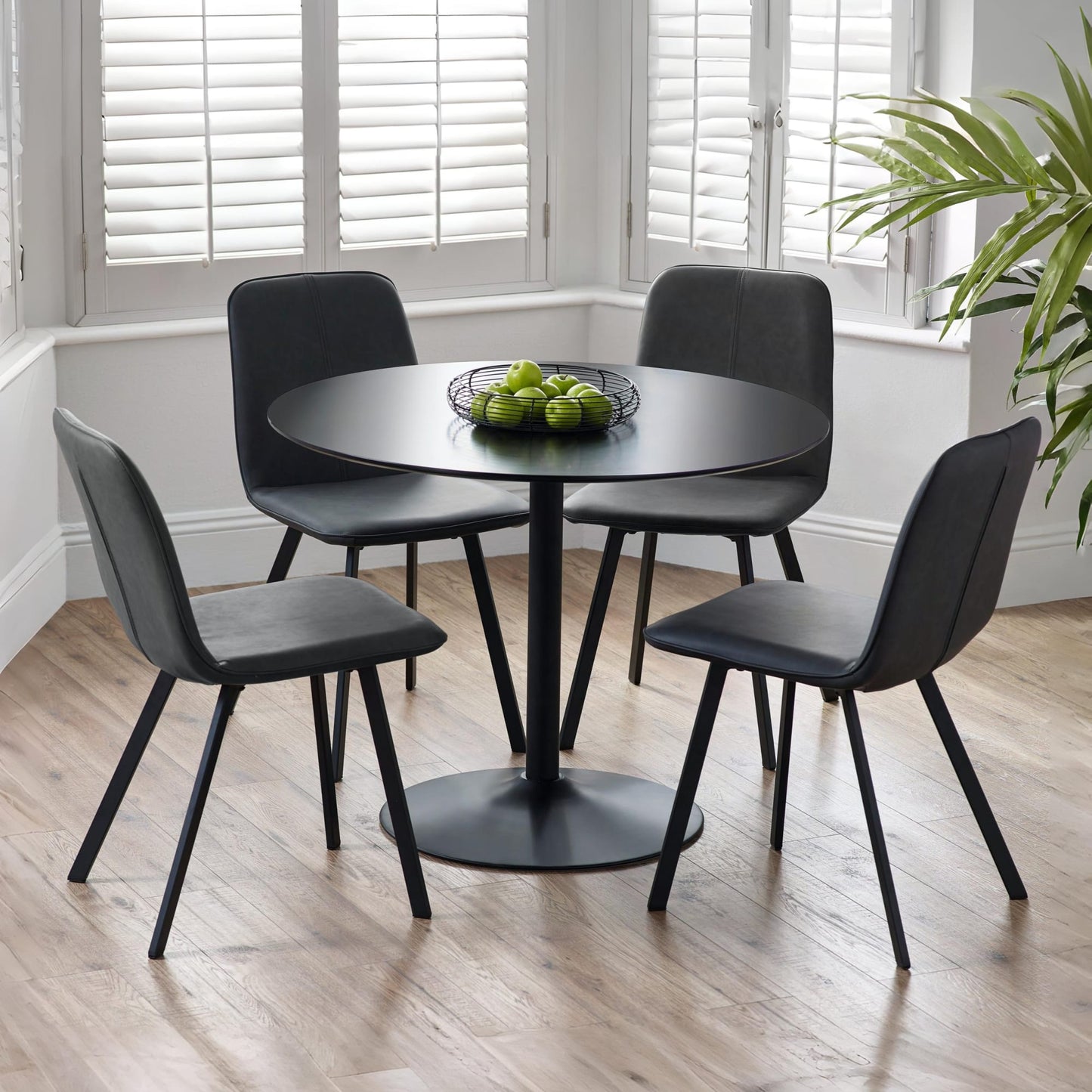 The Goya chairs are designed minimalistically. Finished in faux leather with a curved design, this look is great for differing interior styles from minimalist, to more industrial sets. Available in gorgeous antique black or brown options.