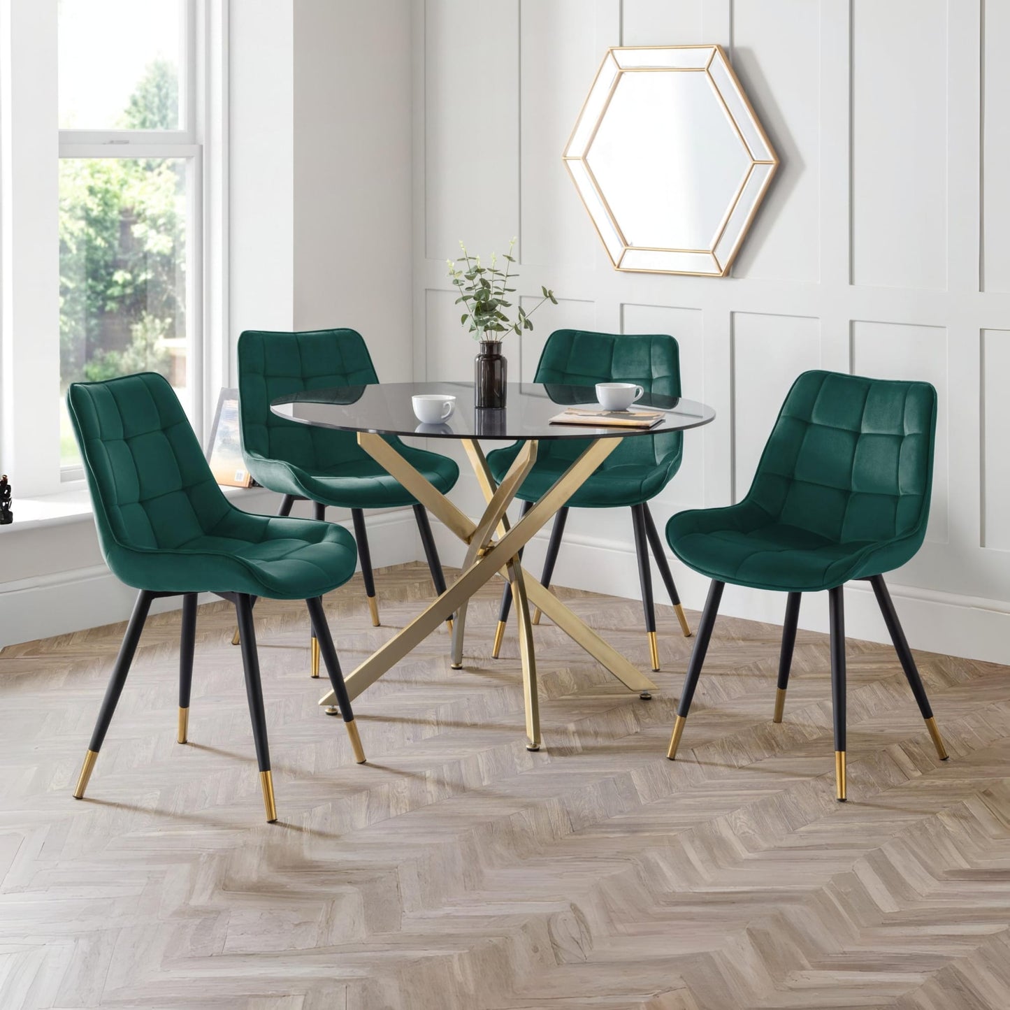 - Luxurious Comfort: Plush green velvet upholstery with quilted detailing offers an inviting texture and adds a touch of elegance to any dining space. Perfect for creating a sophisticated ambiance.