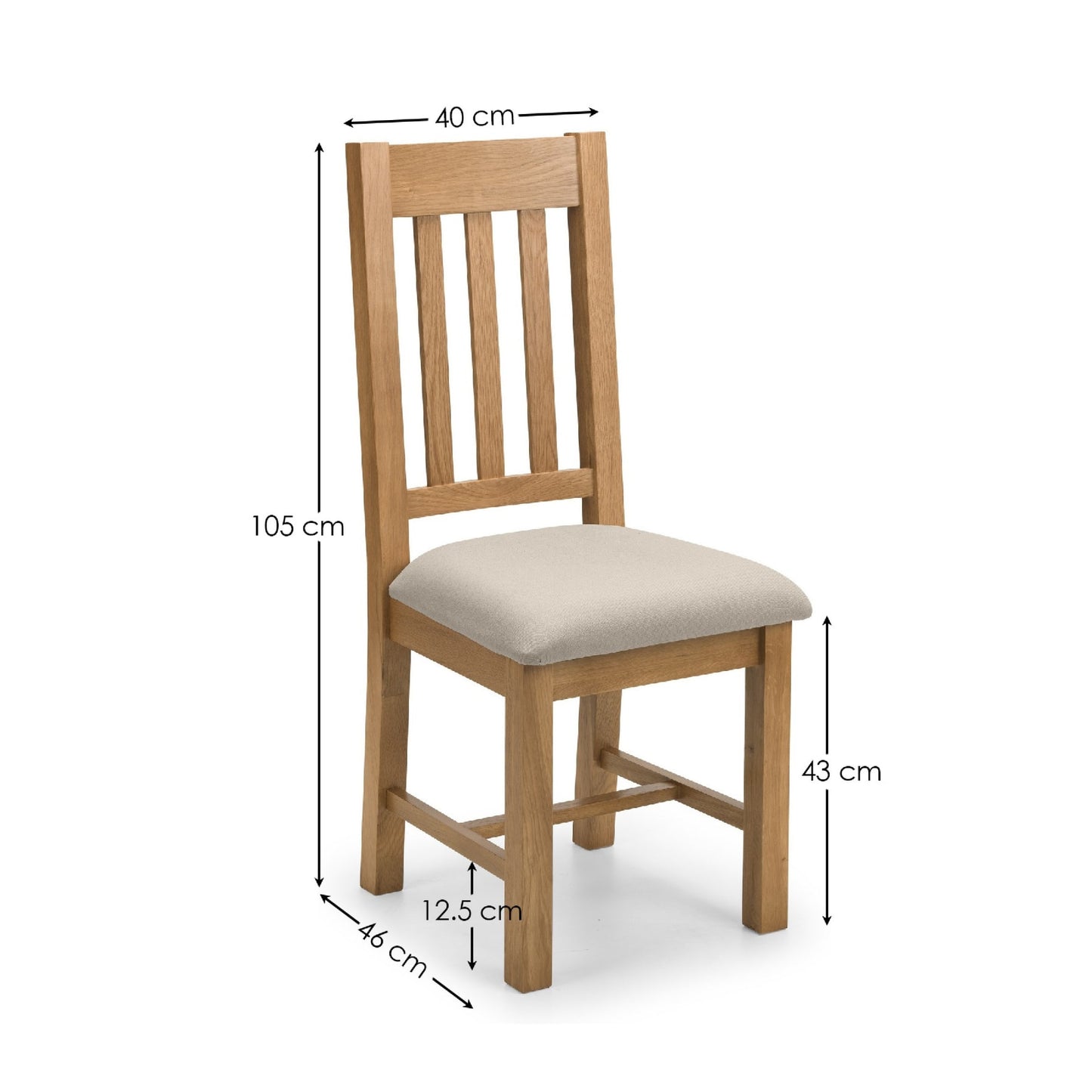 - Dimensions & Details: Overall height 105 cm, seat height 46 cm, seating area depth 40 cm, leg space width 43 cm, depth 12.5 cm.