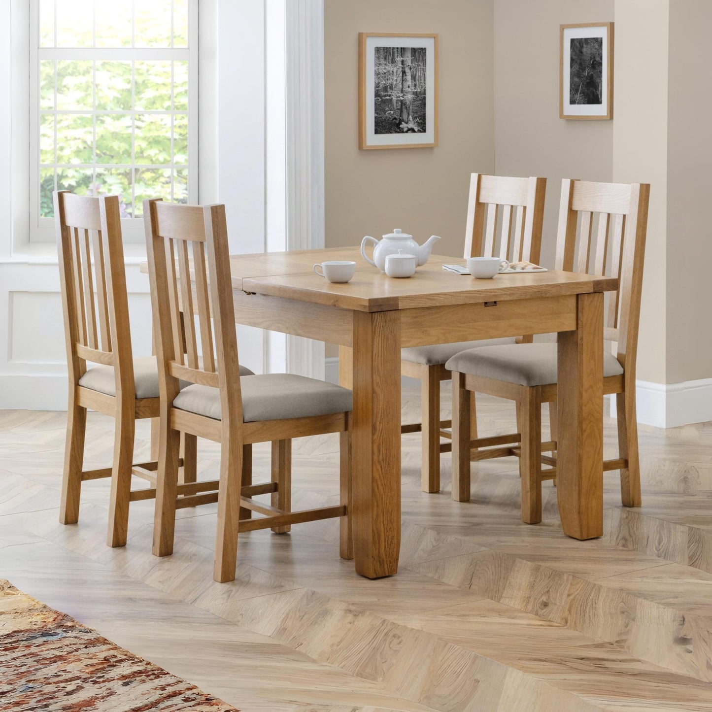 The Hereford Dining chair is crafted from solid white oak with a stunning waxed finish. Featuring a taupe linen upholstered padded seat, allowing your guests to reach maximum comfort around the dining table. Perfect match for the Astoria dining table.