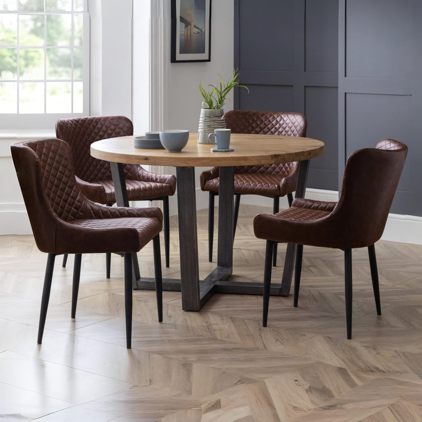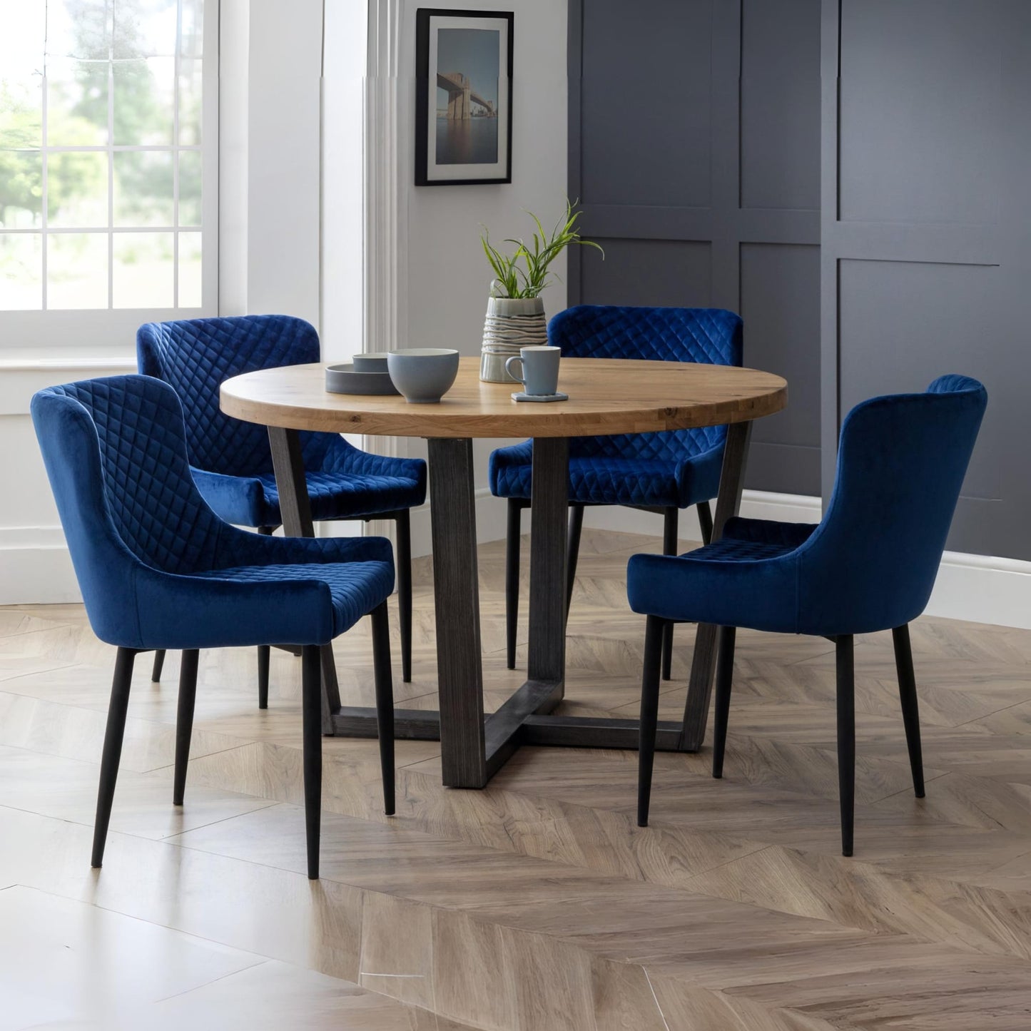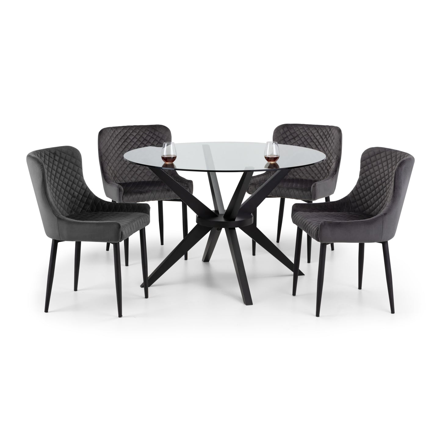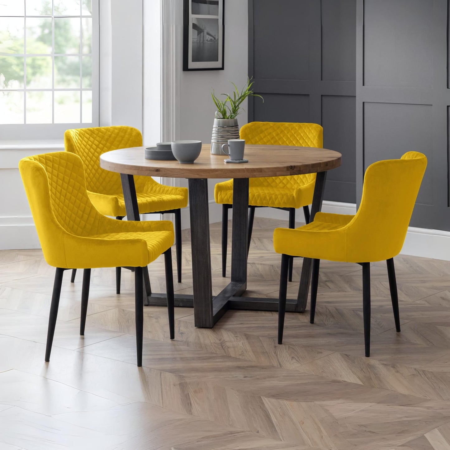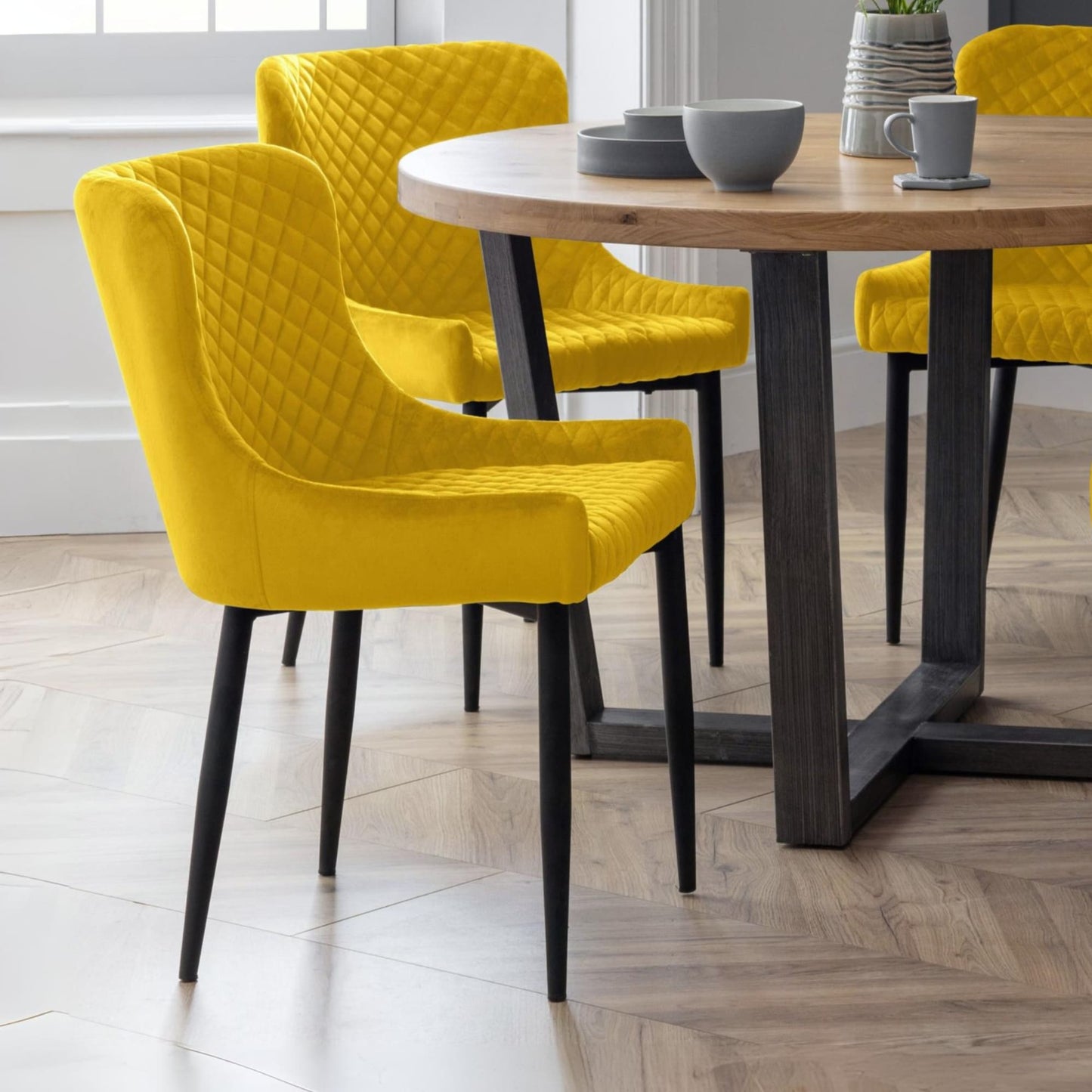 Combining a classic style with a modern twist, the Luxe dining chair is beautifully upholstered in a grey velvet fabric with luxurious quilted detailing. Featuring contemporary black painted legs, this dining chair adds a touch of elegance to any dining area.