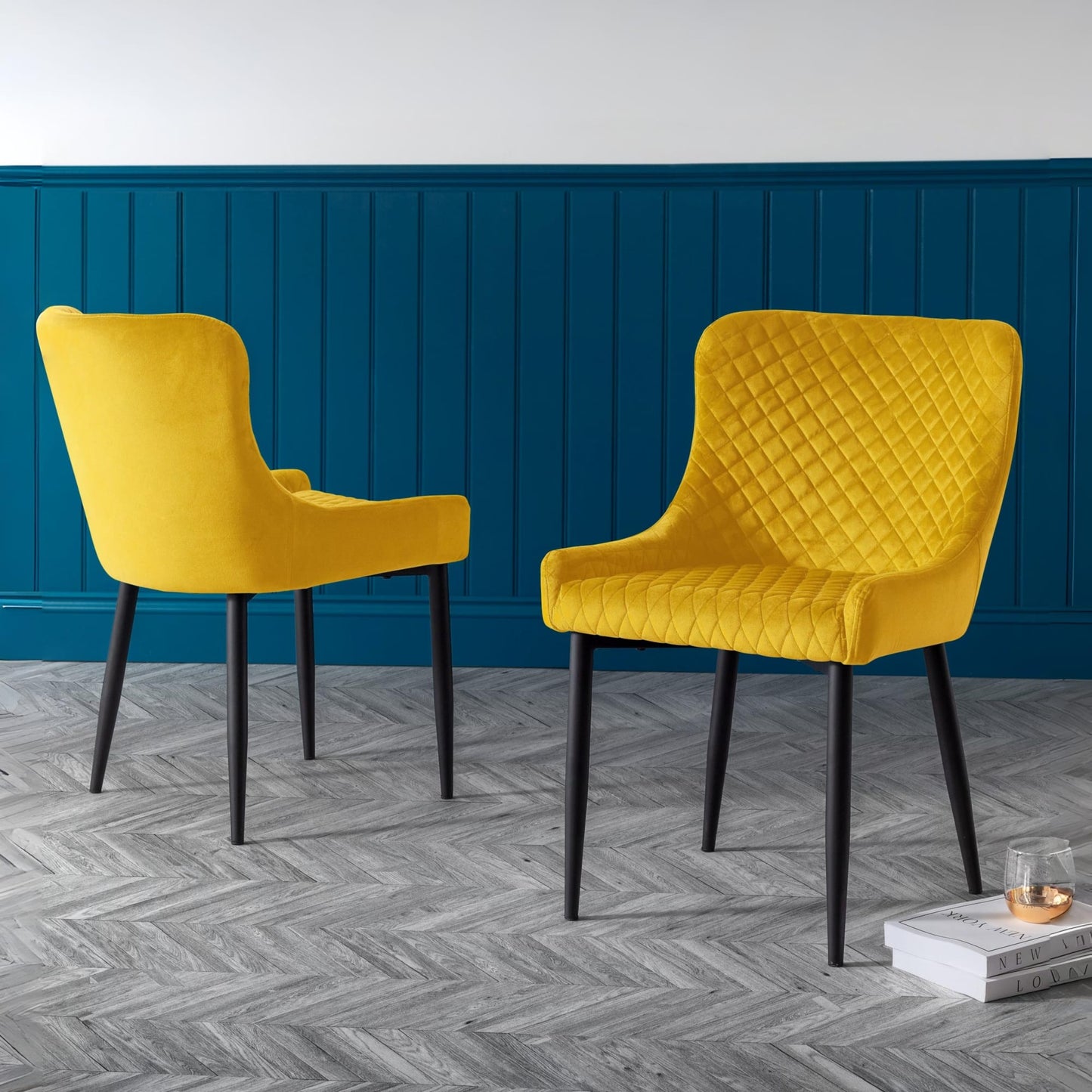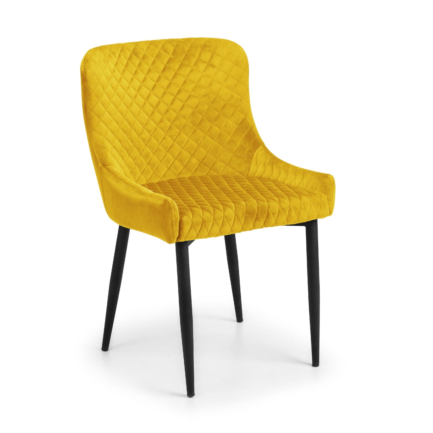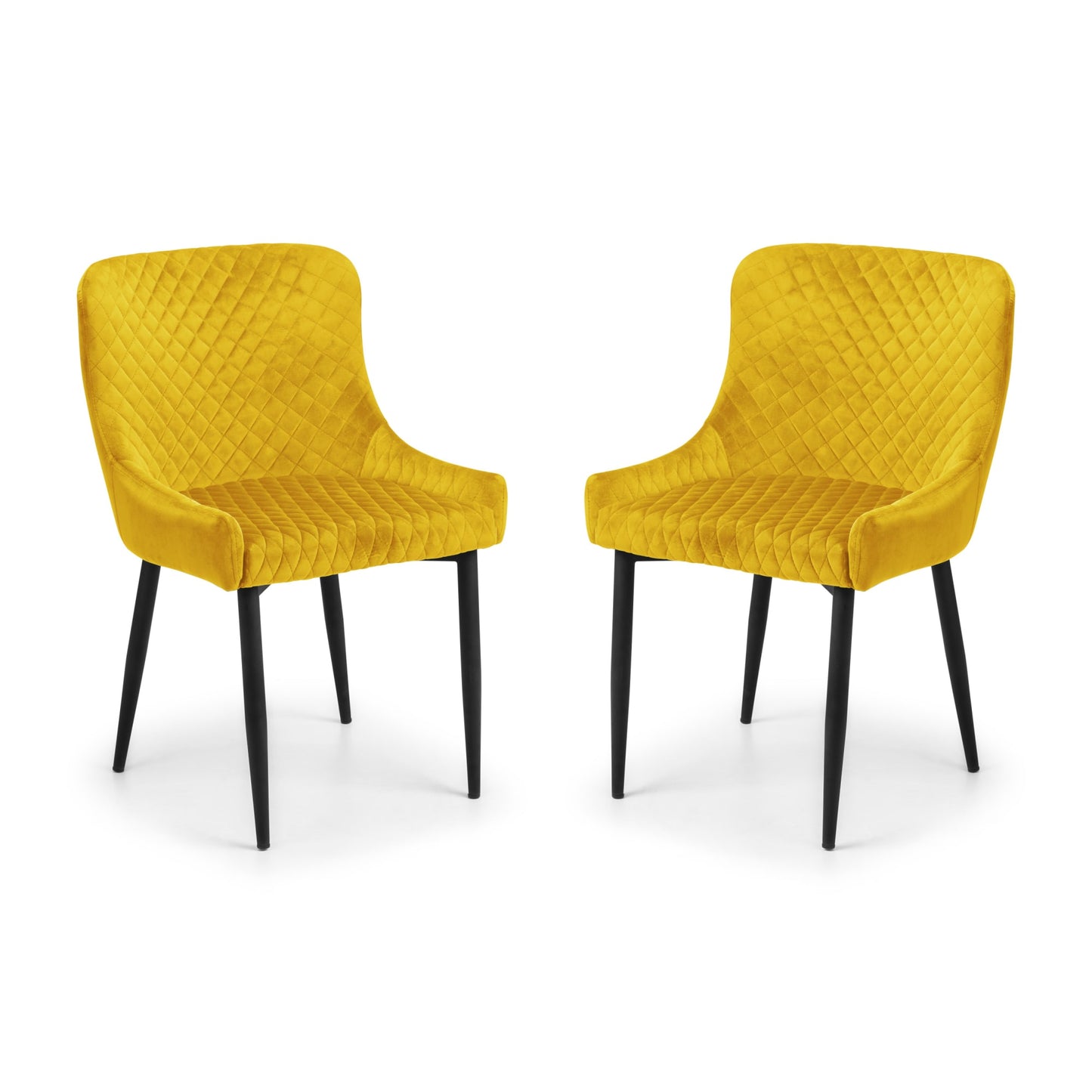 - Vibrant Mustard Upholstery: The Julian Bowen Luxe Dining Chairs feature striking mustard faux leather upholstery that adds a pop of color and a touch of elegance to any dining space. The high-quality material is both stylish and easy to maintain, ensuring these chairs remain a standout piece in your home.