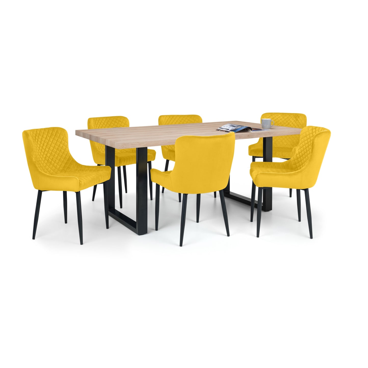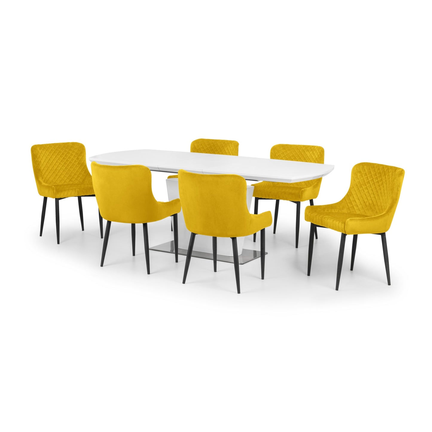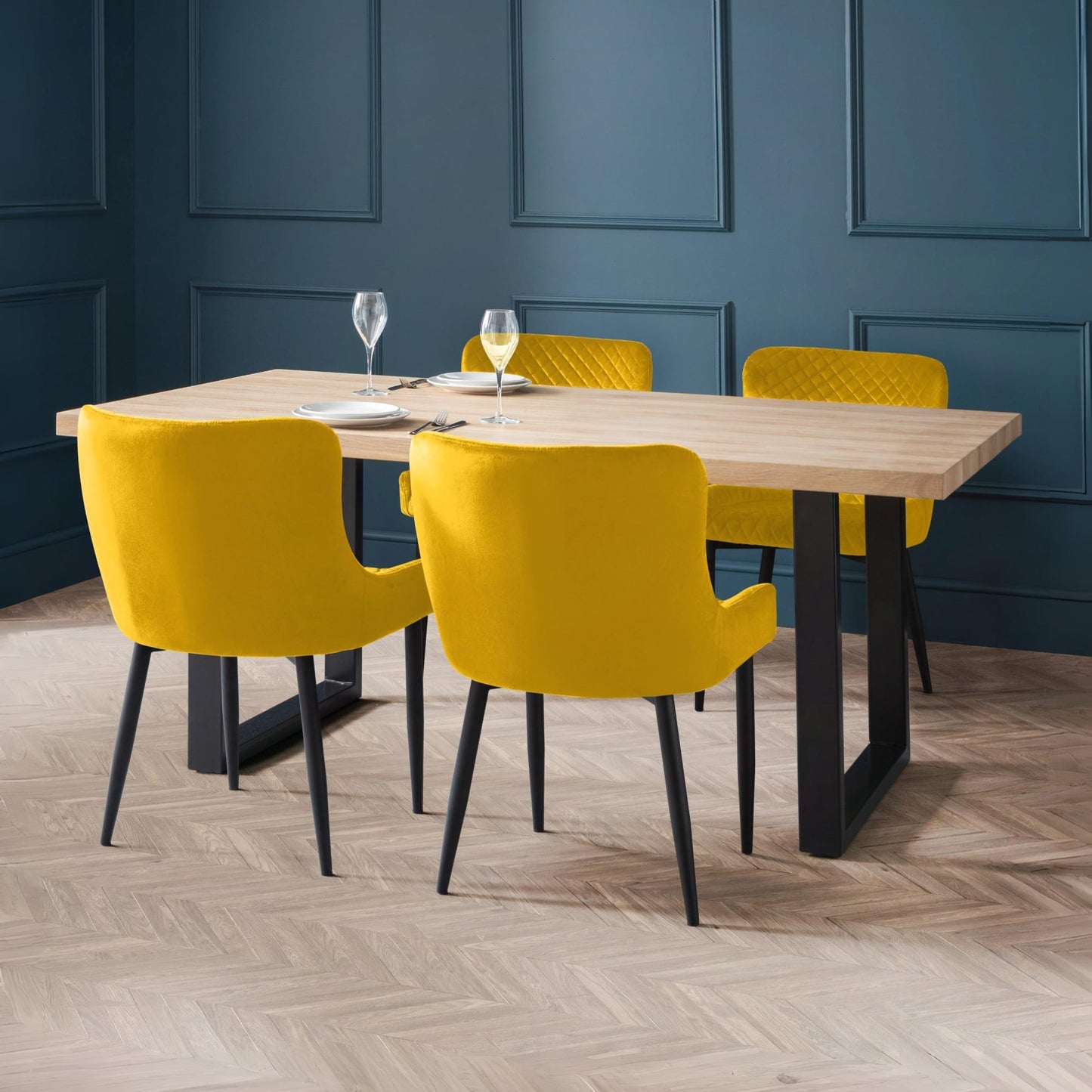 - Vibrant Mustard Upholstery: The Julian Bowen Luxe Dining Chairs feature striking mustard faux leather upholstery that adds a pop of color and a touch of elegance to any dining space. The high-quality material is both stylish and easy to maintain, ensuring these chairs remain a standout piece in your home.