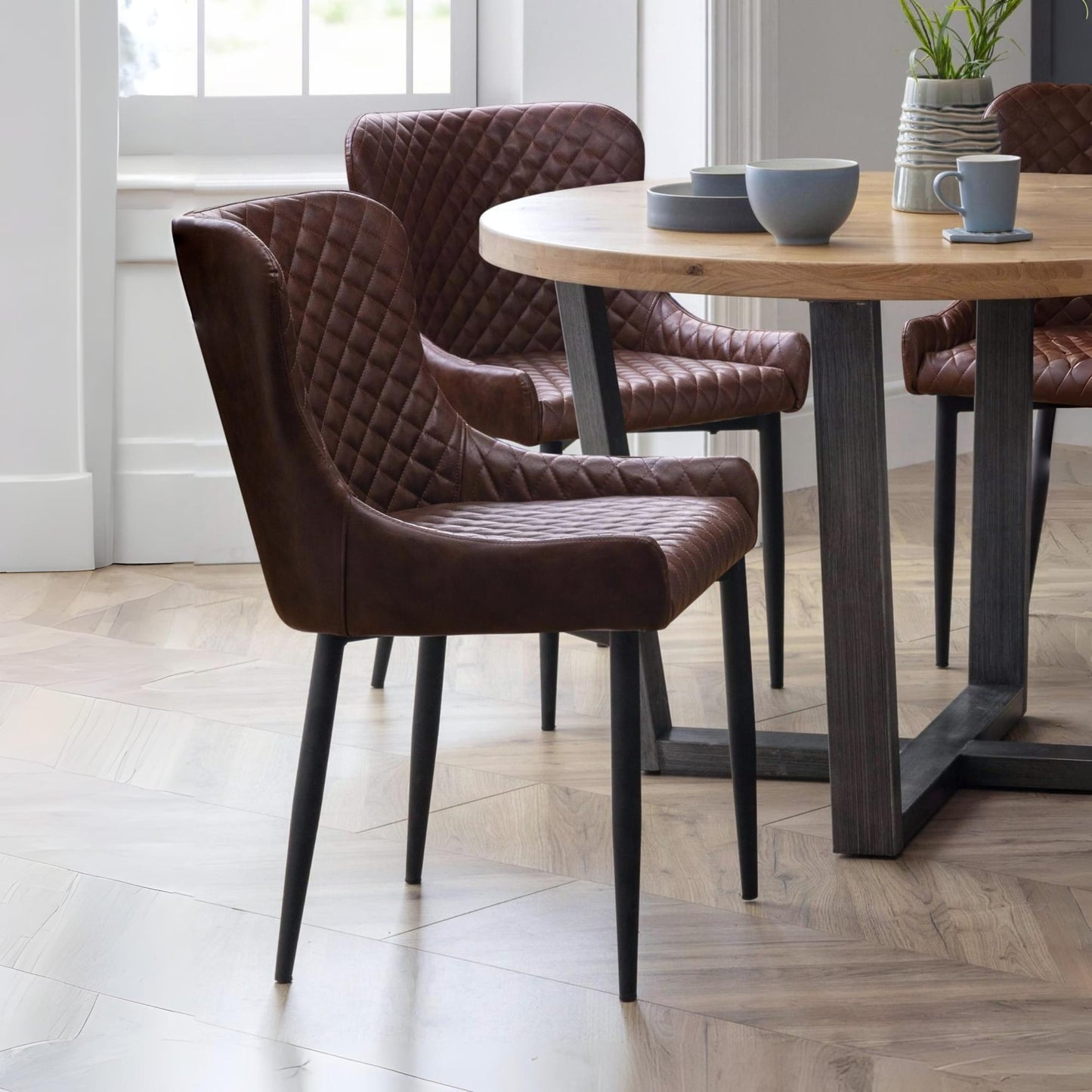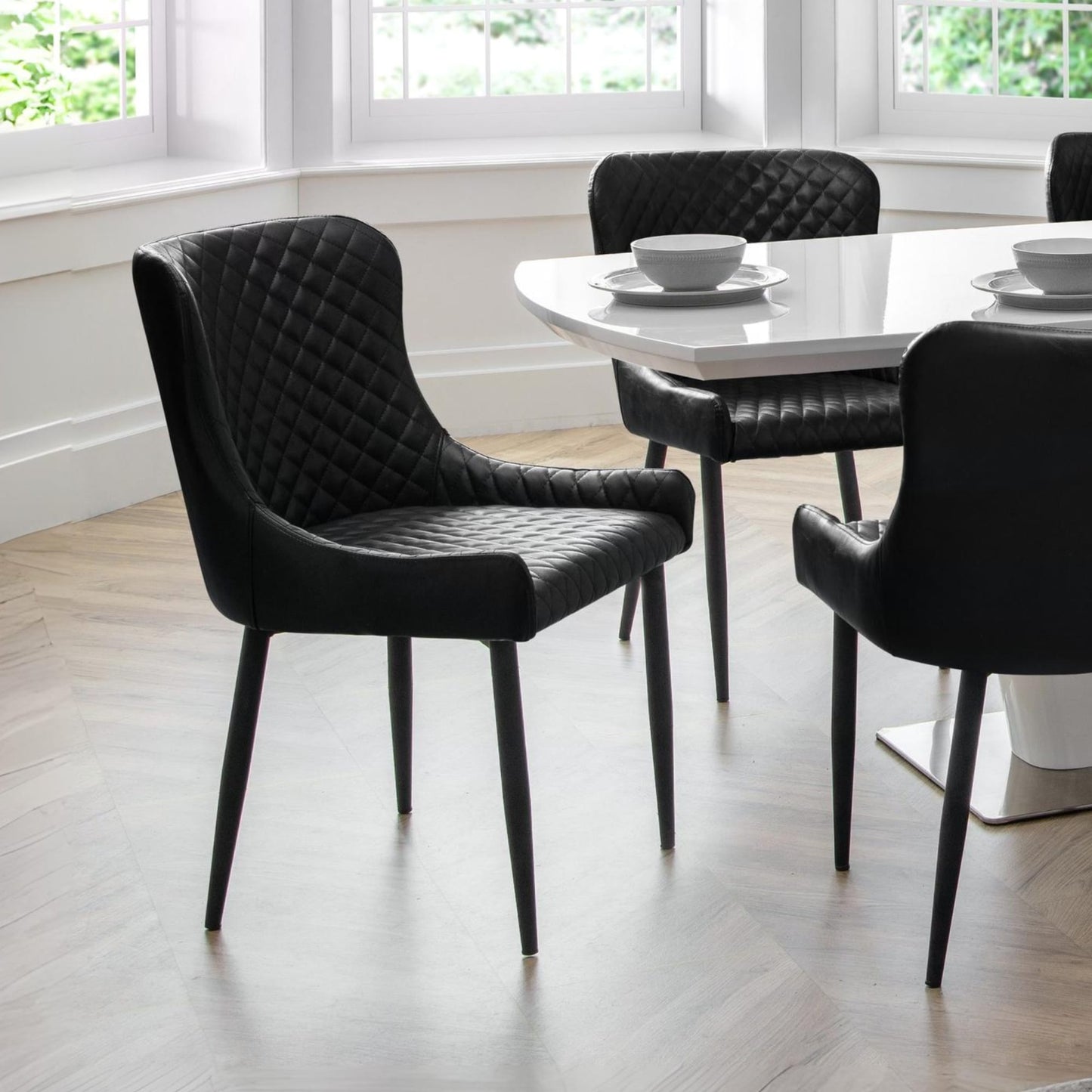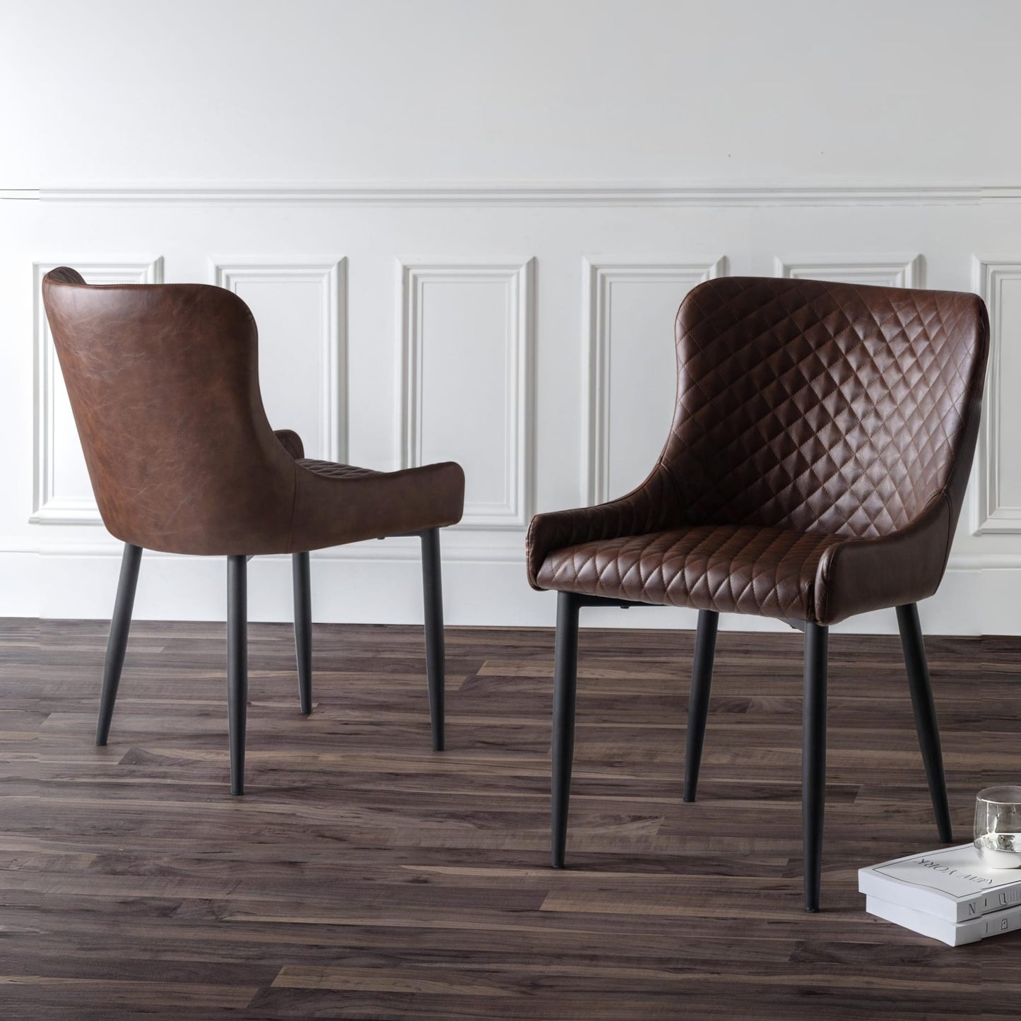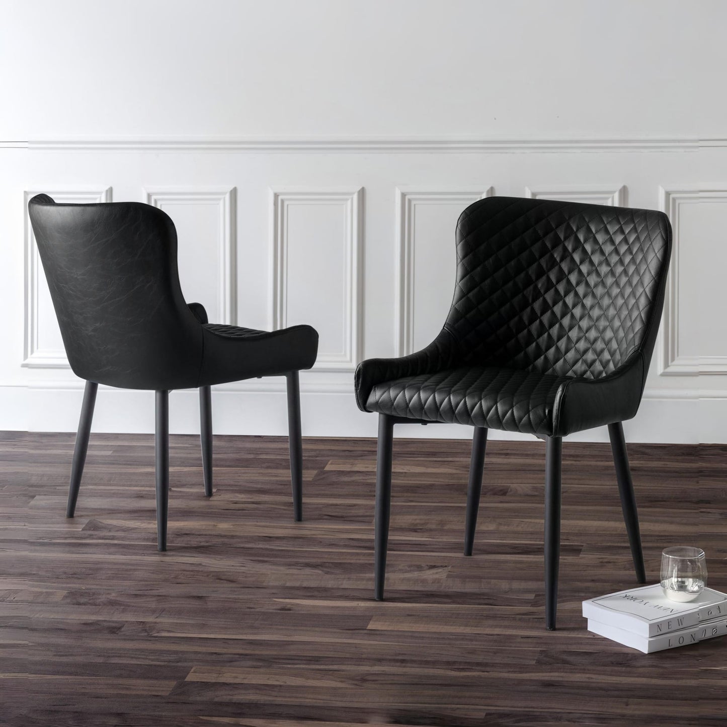 - Luxurious Faux Leather Upholstery: These dining chairs are designed with high-quality, diamond-stitched faux leather, offering a sophisticated and timeless look while ensuring comfort and durability for long-lasting use.