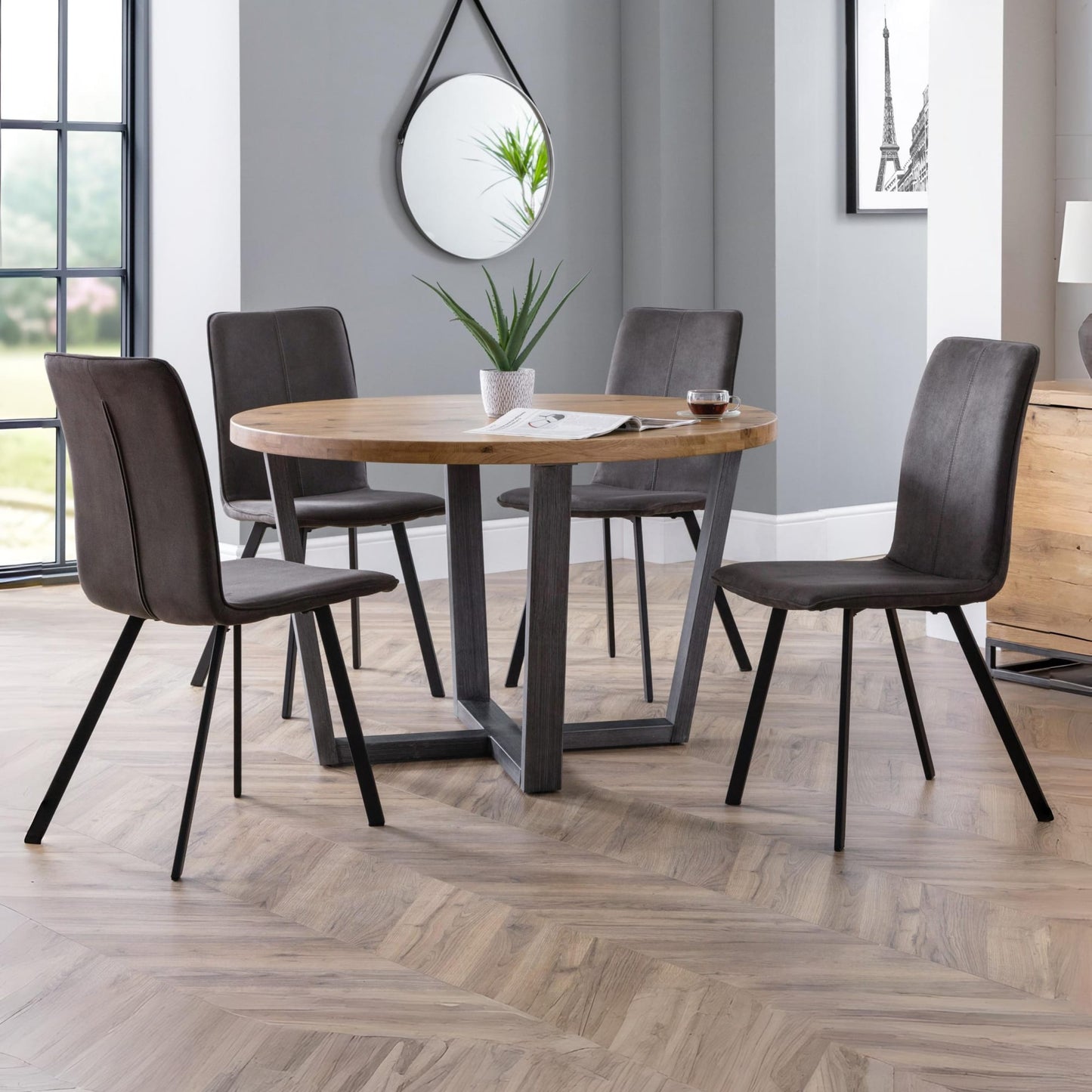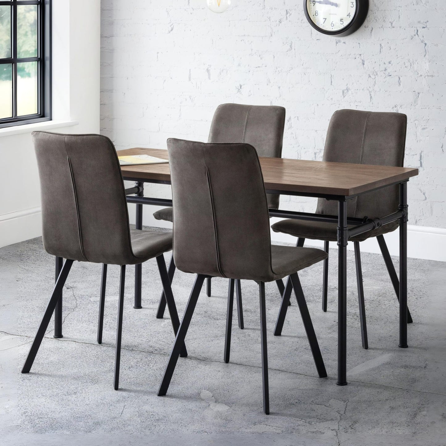 The Monroe Dining Chair combines a retro flair with a contemporary design, perfect for the modern home. Upholstered in a charcoal grey microsuede fabric, with powder coated steel legs, this sturdy design offers a modern, neutral design perfect for a range of decor. Match with the Brooklyn Dining Table, or the Tribeca Dining Table to create an industrial feel.