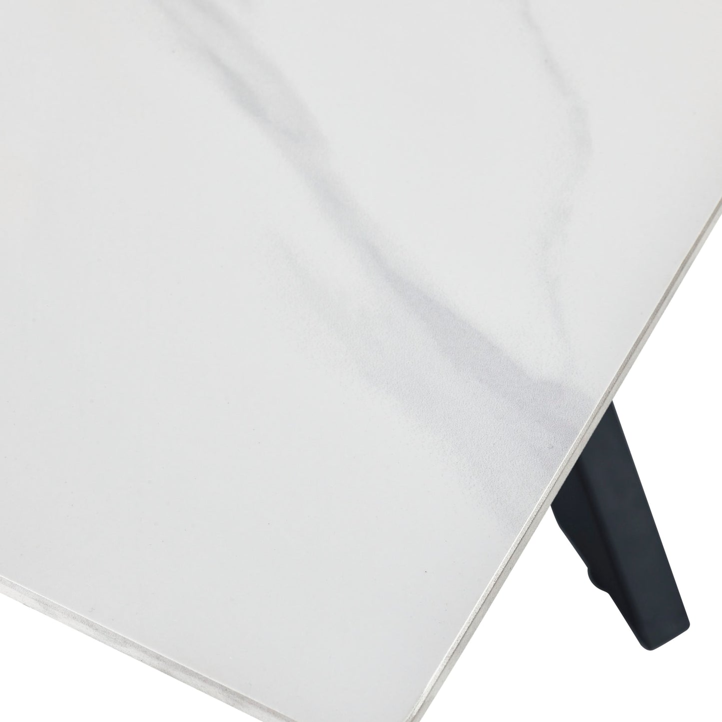 • Receive a sleek marble-effect ceramic top and black steel legs, requiring minimal assembly for easy setup.