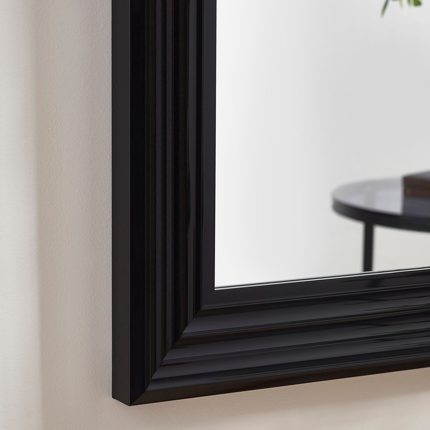 - DECORATIVE FRAME: Sleek gloss black frame with bevelled edge detailing for a refined, modern look.