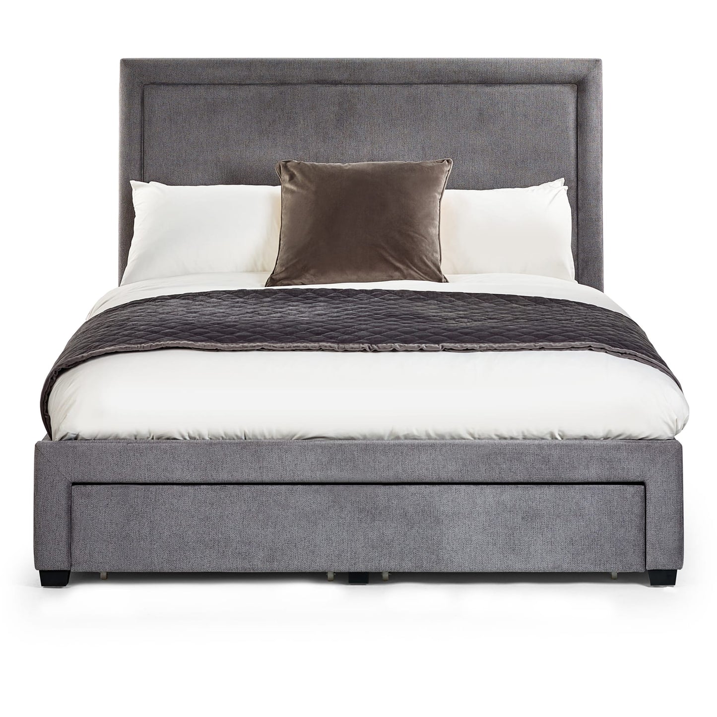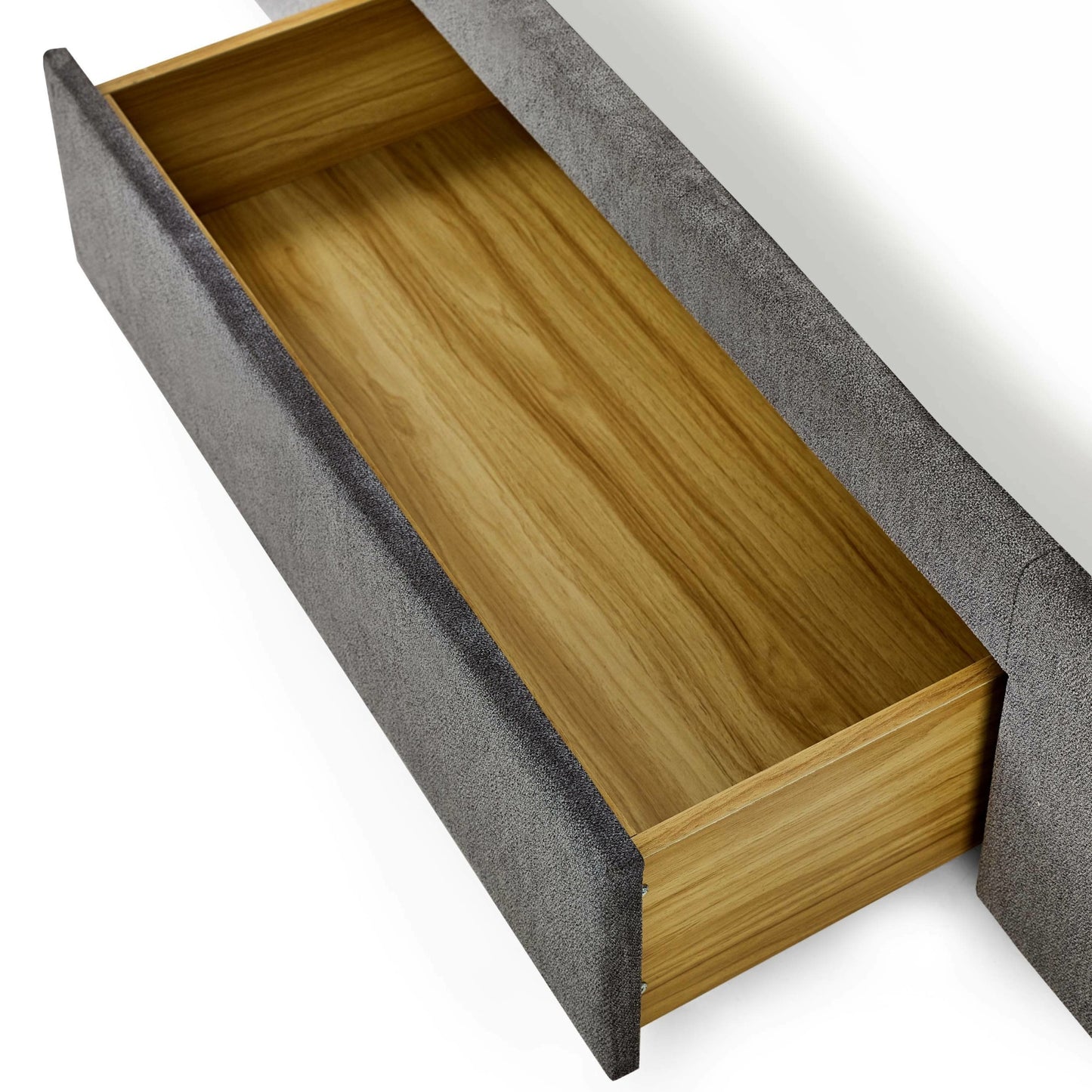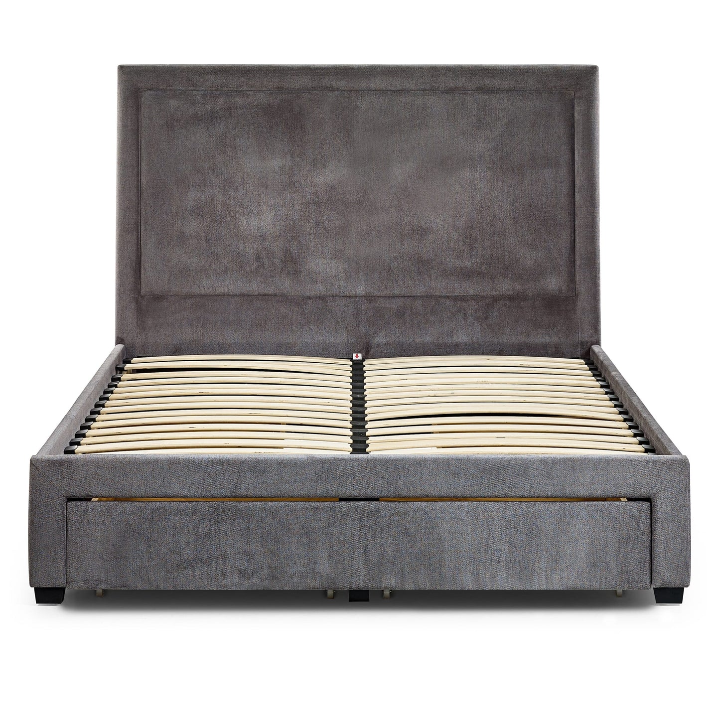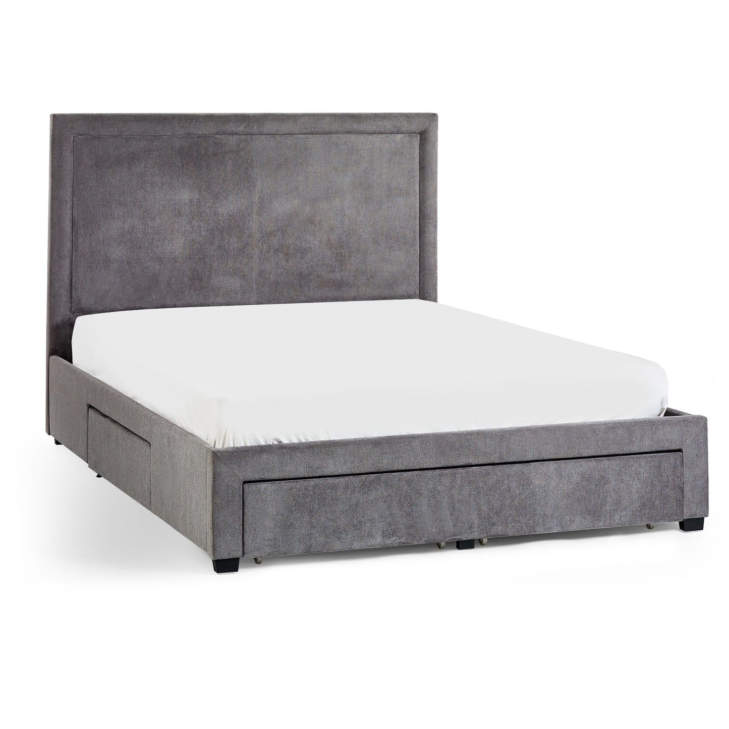 Indulge in luxurious style and functionality with this 135cm grey 4 drawer bed. Beautifully crafted with a sleek grey upholstered frame, it features a refined headboard outline that adds a sophisticated touch to your bedroom. The plush, padded headboard ensures ultimate comfort, while the four spacious under-bed drawers offer discreet storage to keep your space organised. Blending modern elegance with practical convenience, it effortlessly enhances your room. With minimal assembly required, you can effortlessly transform your space into a lavish retreat. Mattress sold separately.