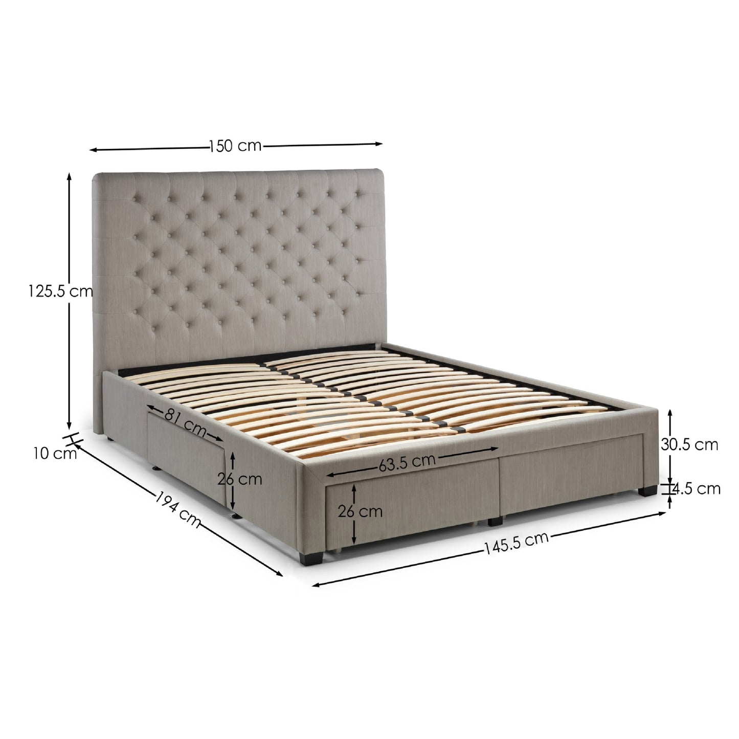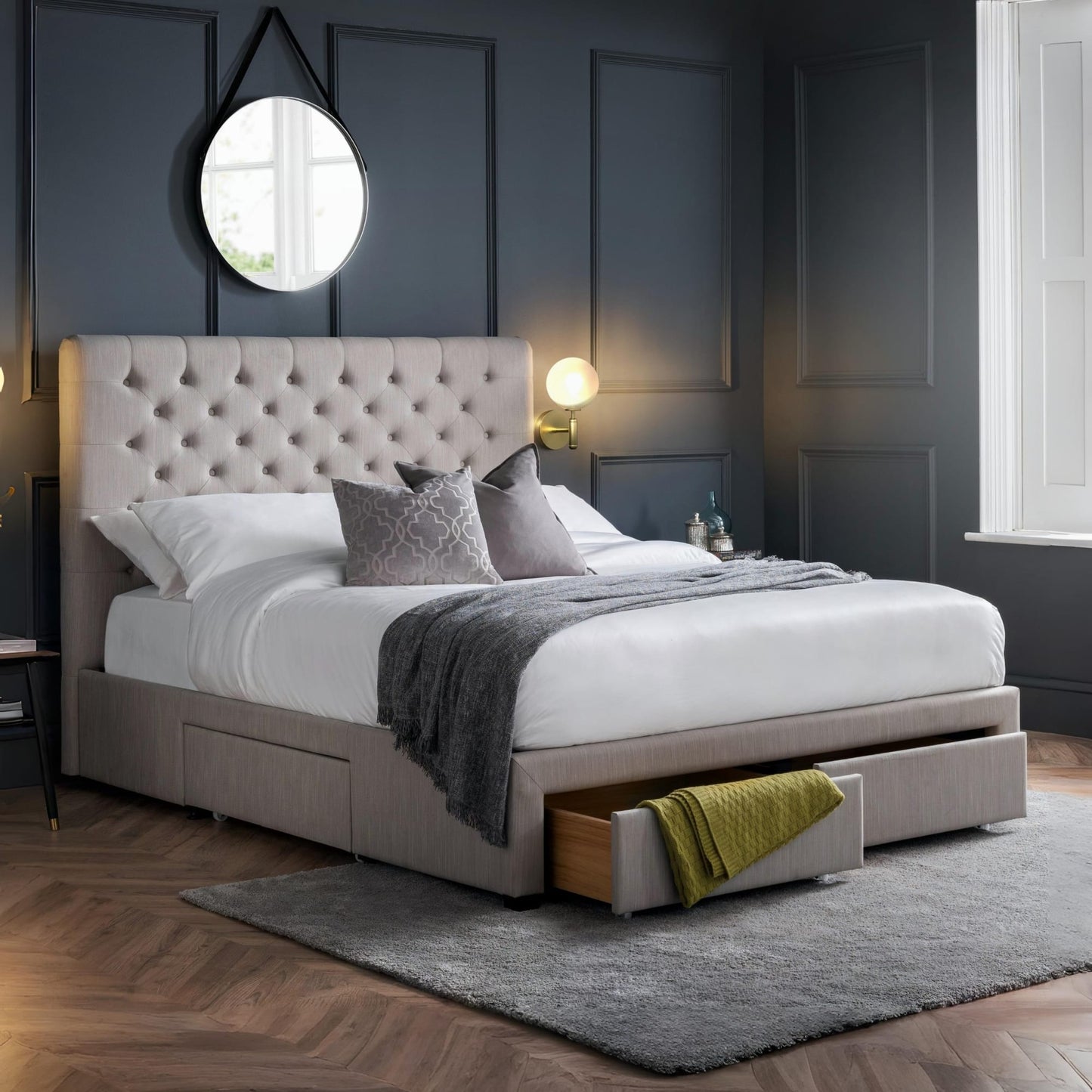 • What’s Included: One Julian Bowen Wilton Deep Button 4 Drawer Bed frame in grey linen. Mattress sold separately – ready to assemble with easy-to-follow instructions.