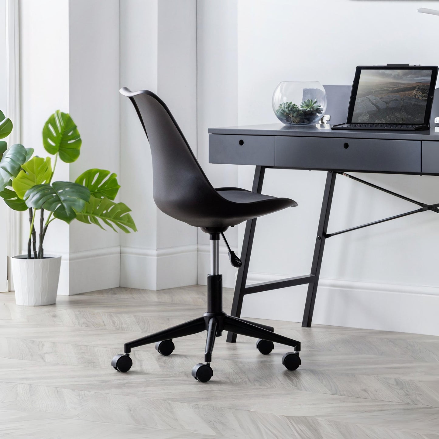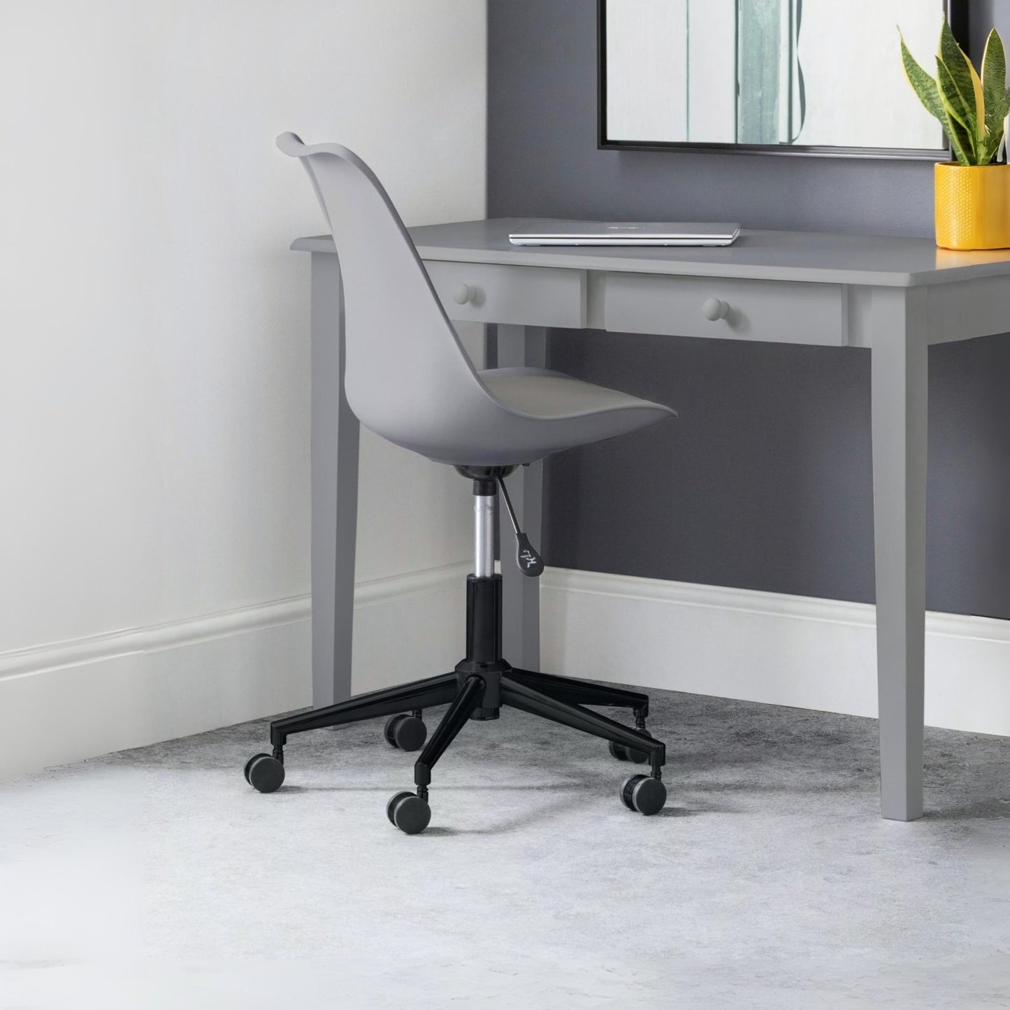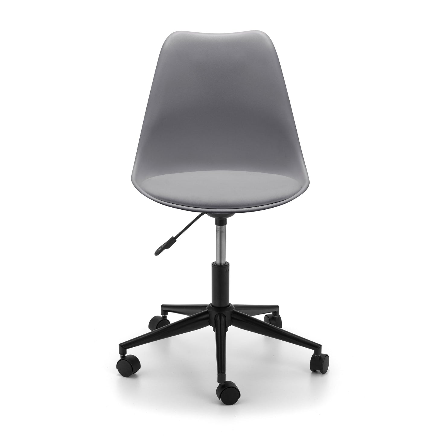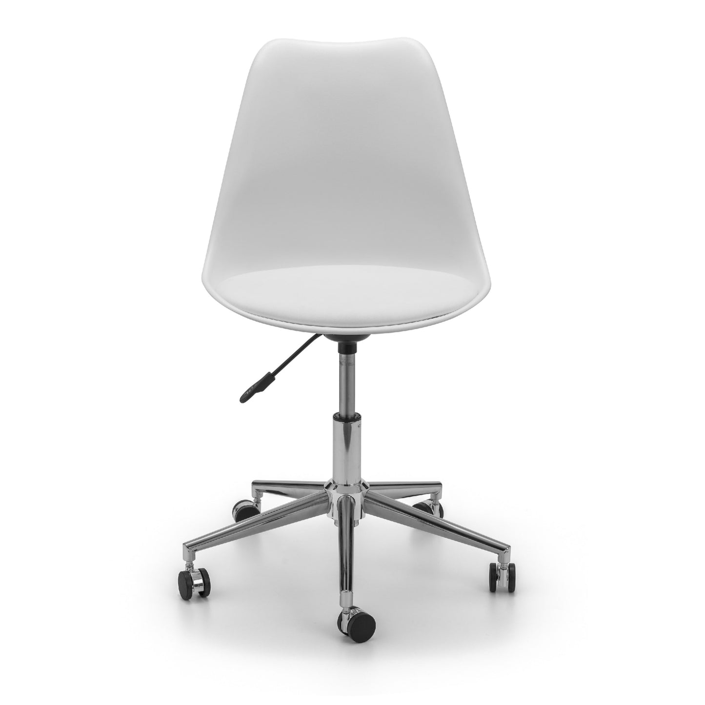 The super sleek Erika Office Chair offers a contemporary, futuristic look perfect for home and office use with its adjustable seat height. Offering the choice of a black, grey or white finish, this eye-catching chair offers an easy to clean PU cushion upon a polyethene seat. Easily move around at your convenience with a single chrome plated stem upon 5 castors.