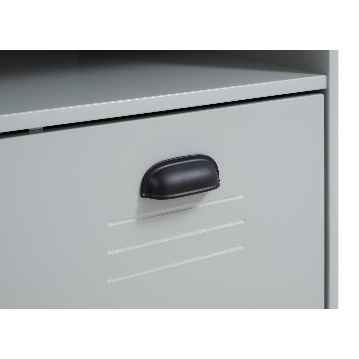 Create a unique industrial vibe with the Lakers Locker Bedroom Collection. Crafted from solid pine and MDF in a metal effect grey lacquer with black metal effect legs and handles, the Lakers range features ventilation detailing to resemble a vintage locker effect. Perfect for a range of modern, retro bedrooms.