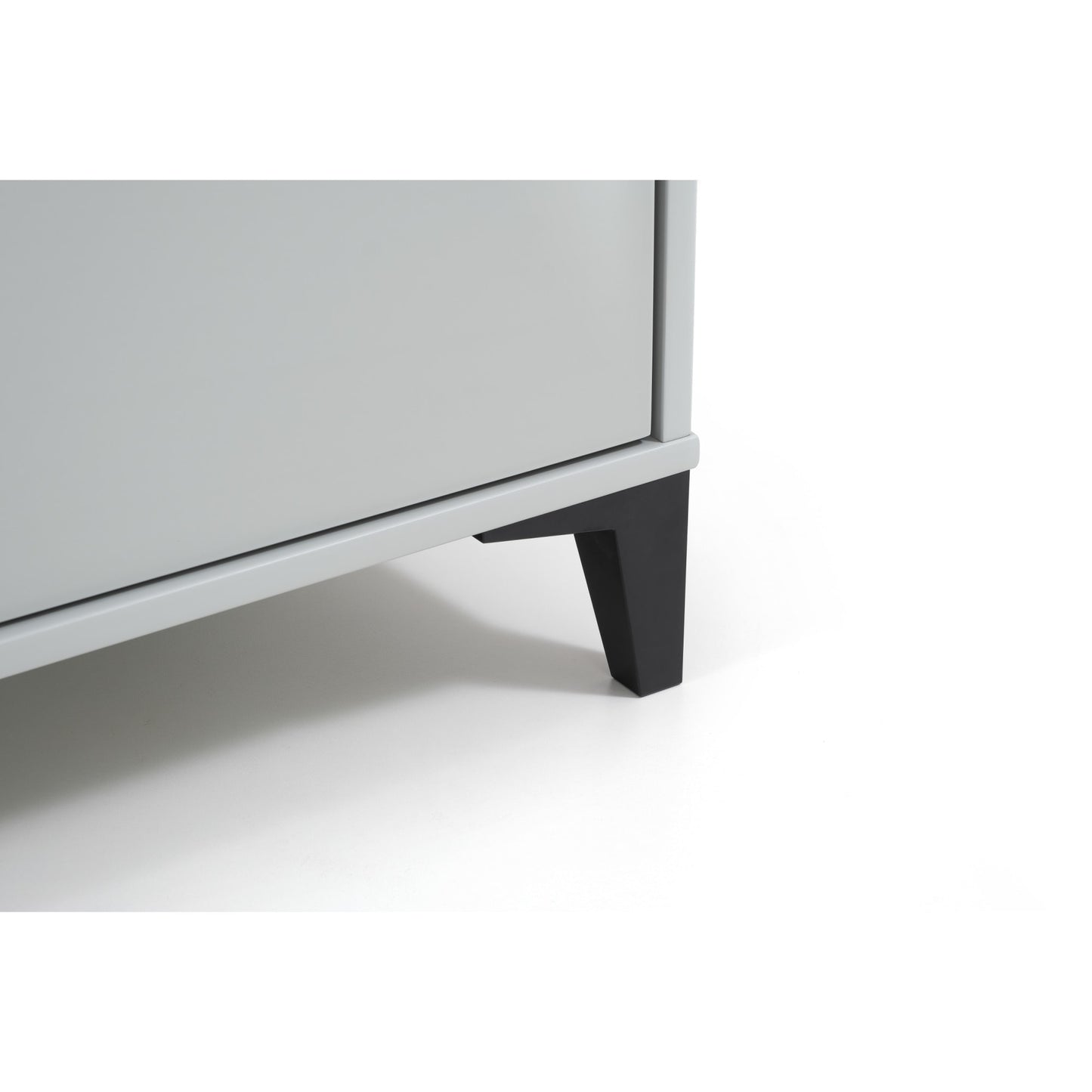 - Metal effect grey lacquer with black metal effect legs and handles.