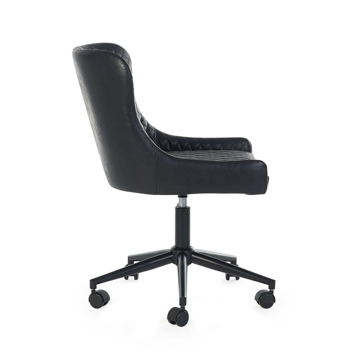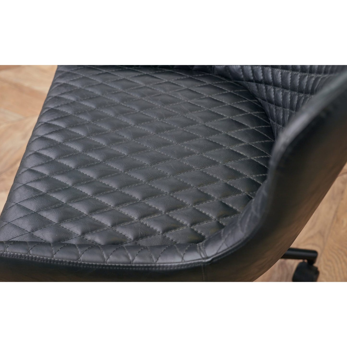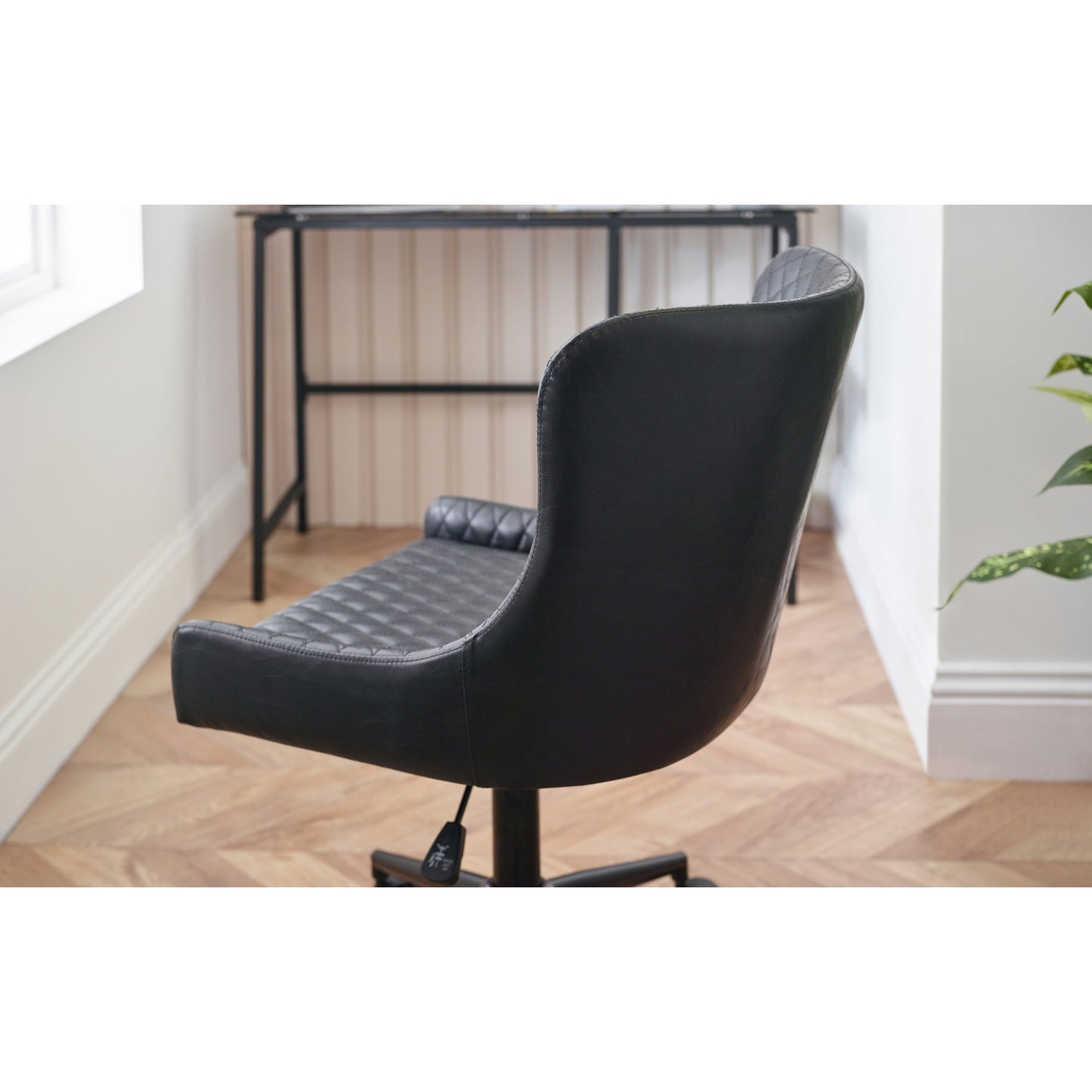 Step into the world of sophistication and comfort with the Luxe Office Chair in Black Faux Leather. This chair effortlessly combines elegance with contemporary flair, boasting exquisite faux leather upholstery adorned with opulent quilted detailing. Complete with five sleek black coasters for effortless mobility and a height-adjustable mechanism for customisable comfort, it caters to your individual preferences while enhancing your overall comfort and productivity. Minimal assembly is required, ensuring a hassle-free setup.