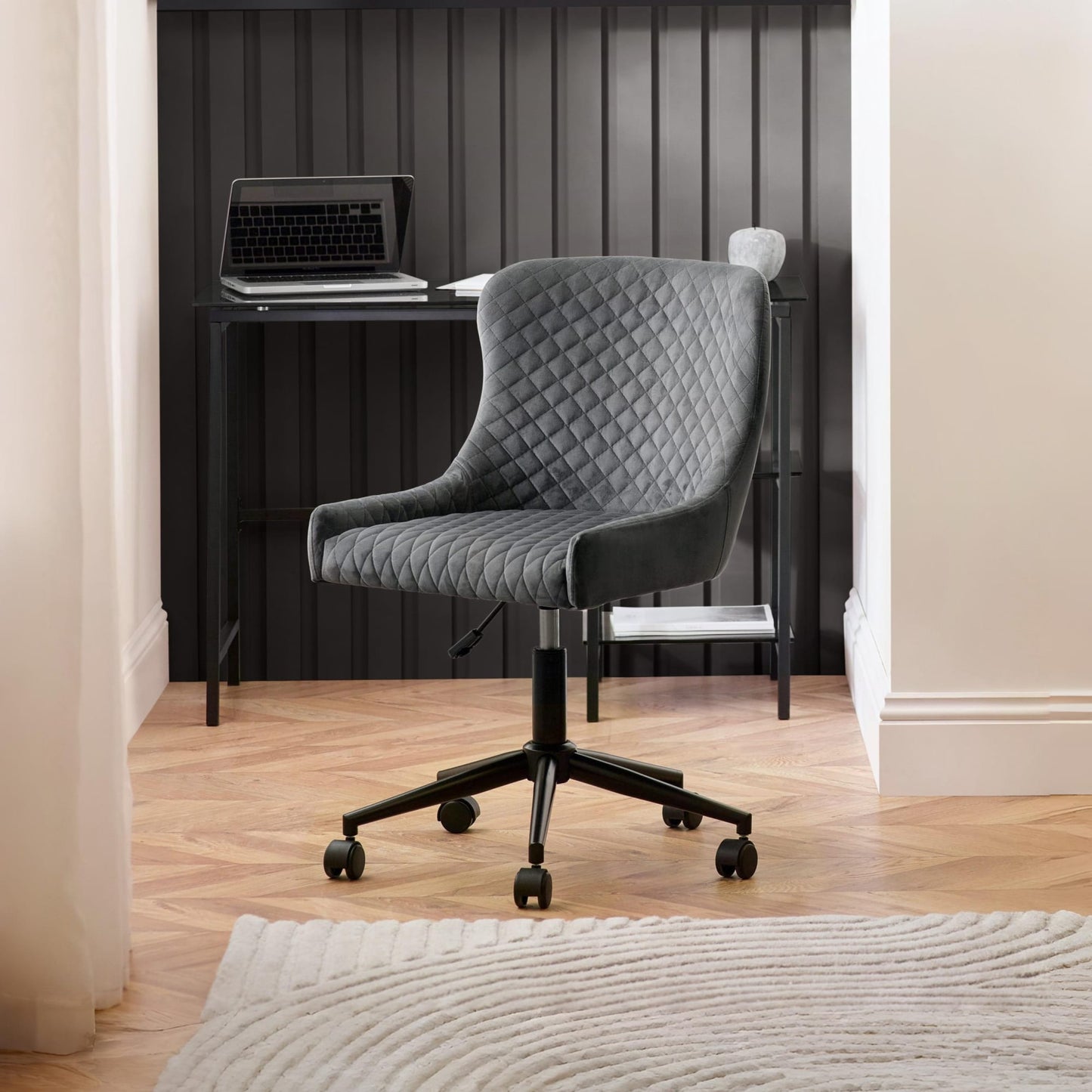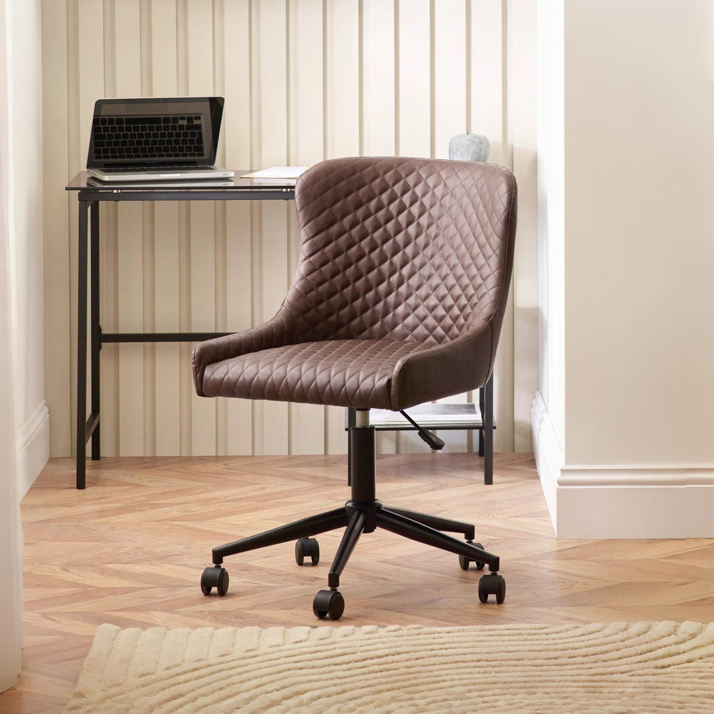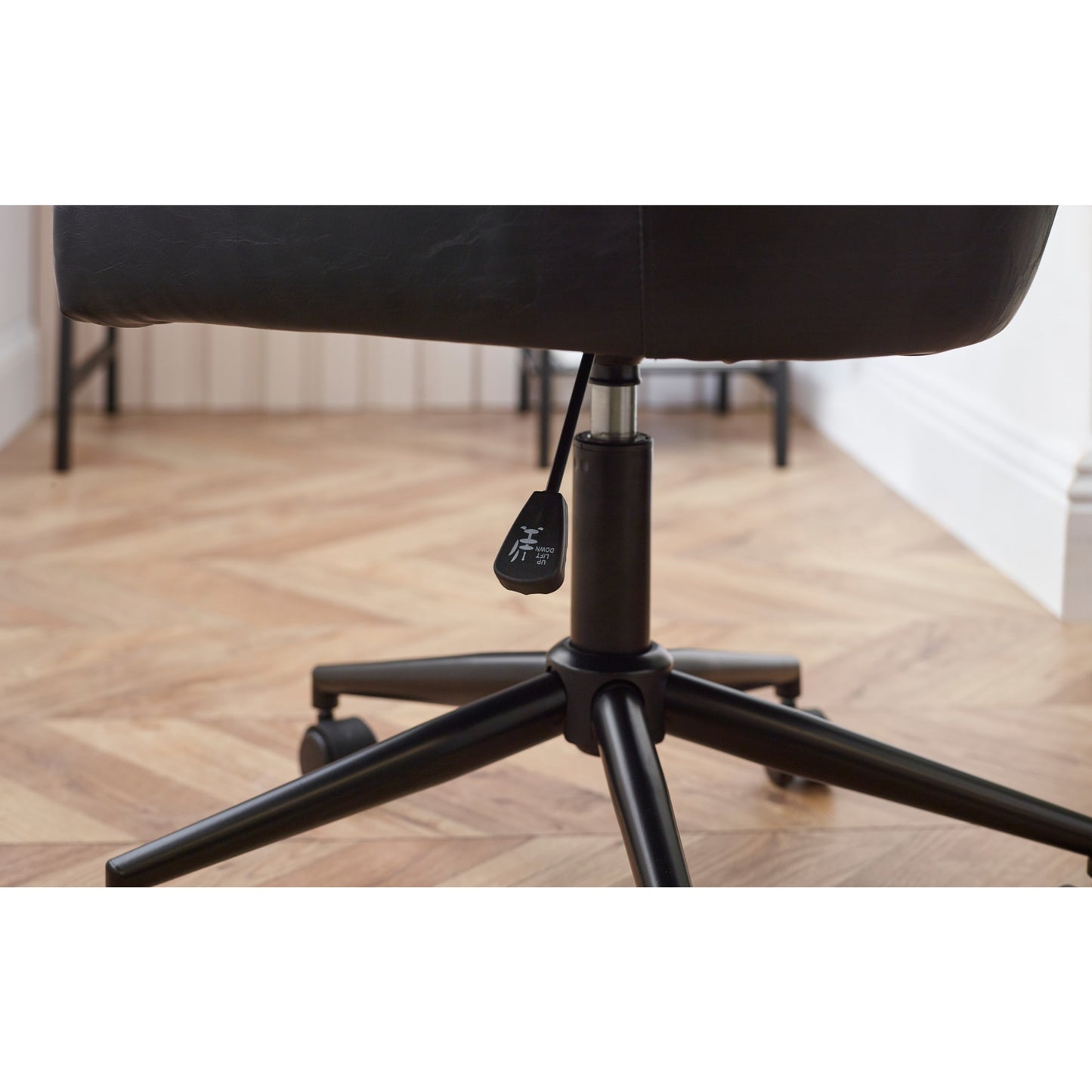 Step into the world of sophistication and comfort with the Luxe Office Chair in Black Faux Leather. This chair effortlessly combines elegance with contemporary flair, boasting exquisite faux leather upholstery adorned with opulent quilted detailing. Complete with five sleek black coasters for effortless mobility and a height-adjustable mechanism for customisable comfort, it caters to your individual preferences while enhancing your overall comfort and productivity. Minimal assembly is required, ensuring a hassle-free setup.