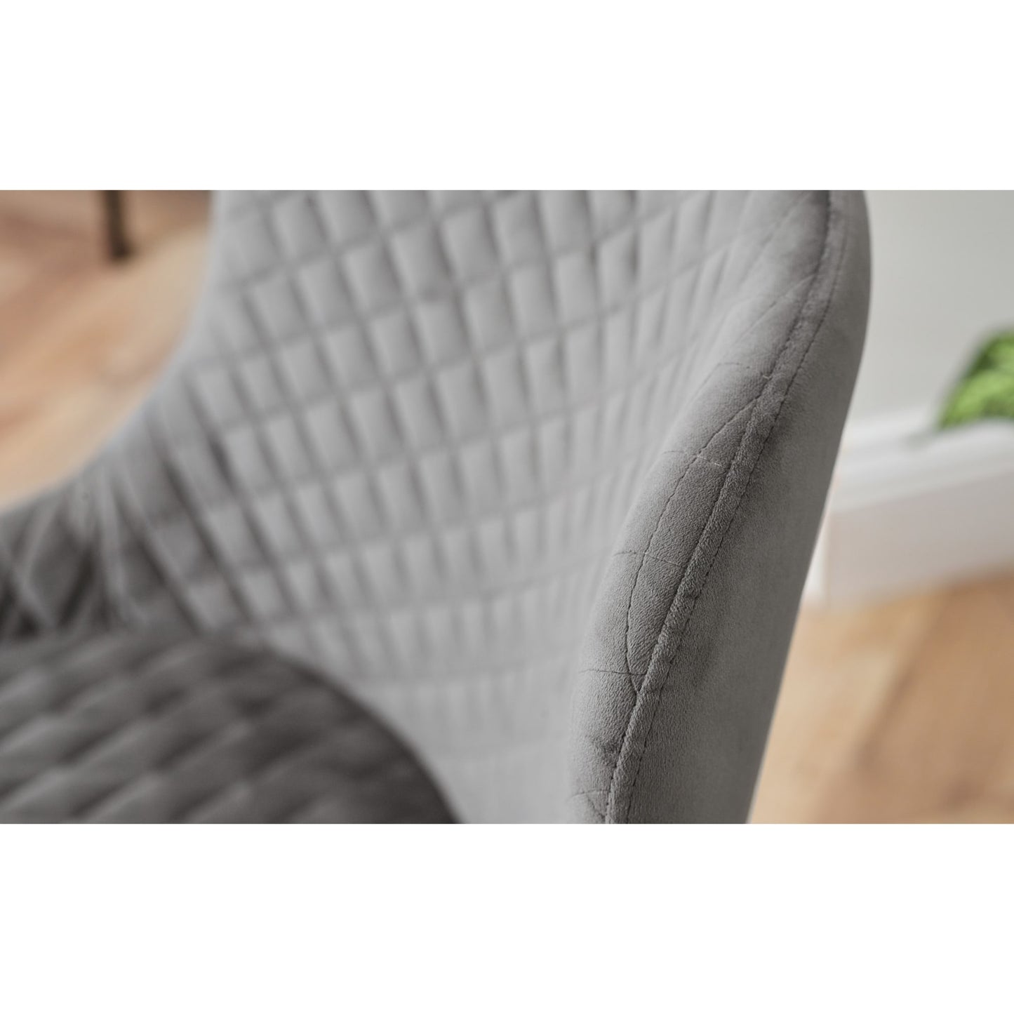 - Luxuriate in opulent grey velvet upholstery for refined comfort.