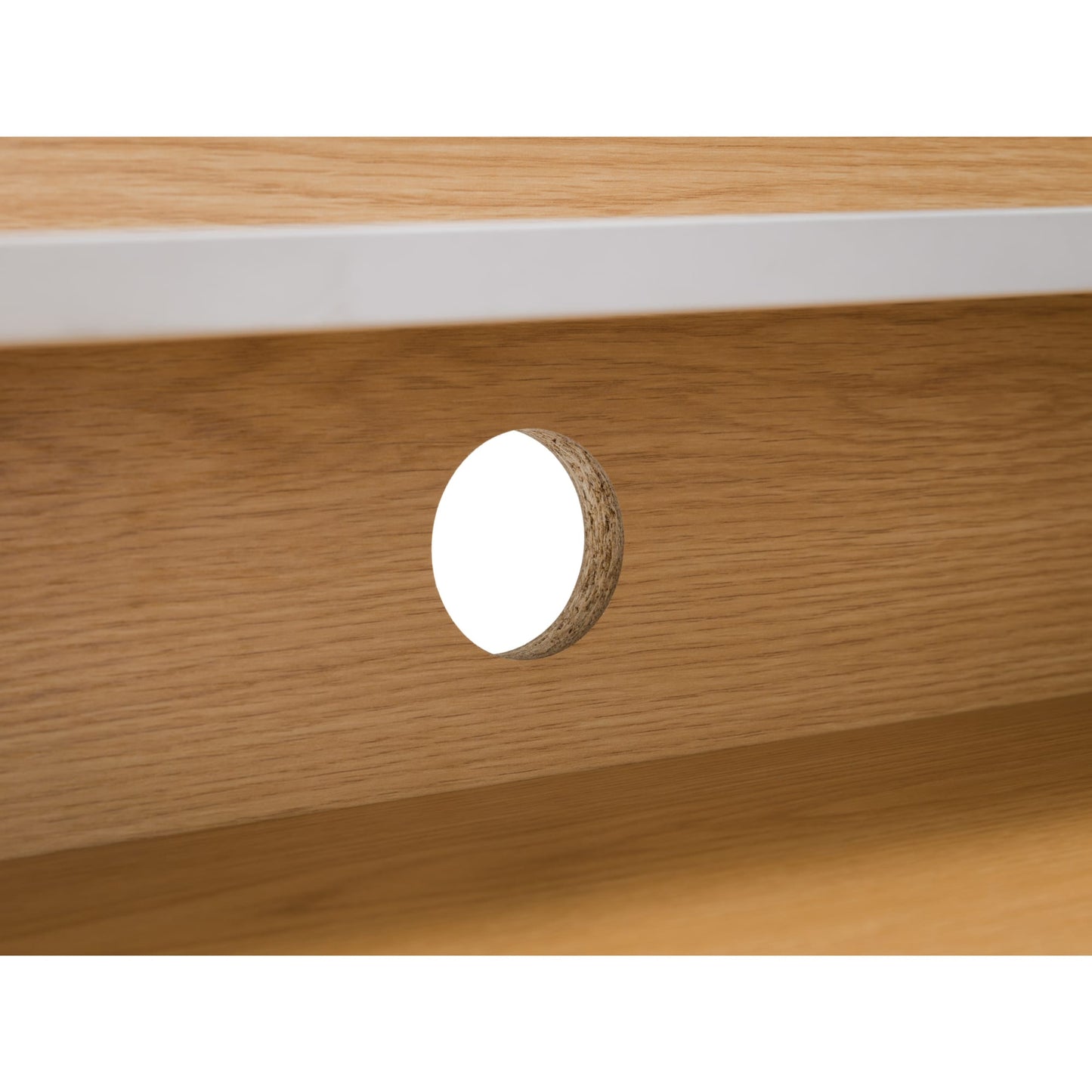 - Finished in an oak effect with a contrasting white shelf and legs.