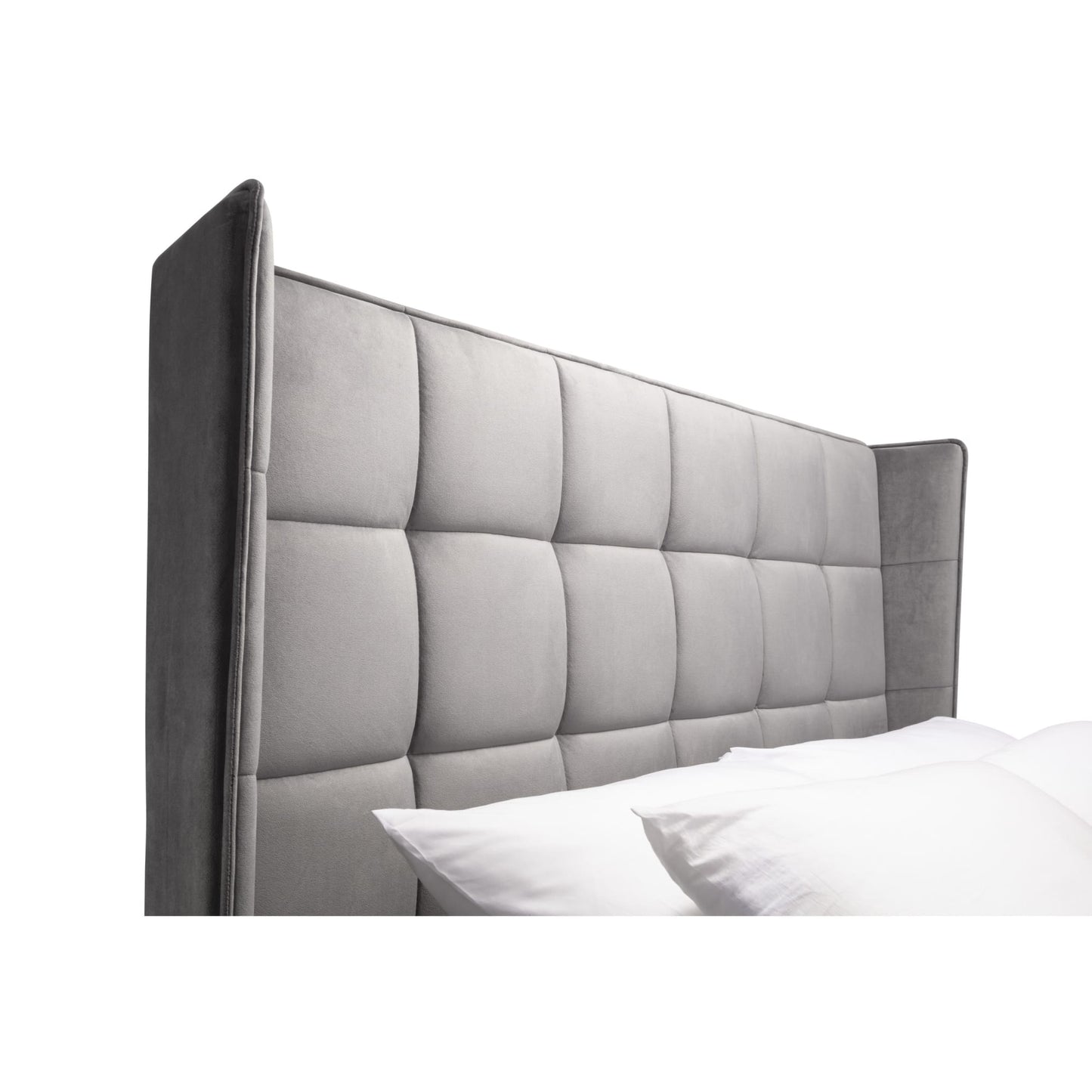 Step into the realm of timeless elegance with the Gatsby Ottoman Bed, a perfect fusion of inspired design and functional luxury. The beautiful winged headboard brings a touch of sophistication to your bedroom, while the pull-up ottoman space beneath enhances your storage solutions with both convenience and refinement. Finished in a stunning grey velvet, the bed exudes an aura of luxury and comfort. The detailed headboard adds a distinctive and stylish touch, creating a bedroom centerpiece that seamlessly blends opulence with practicality.